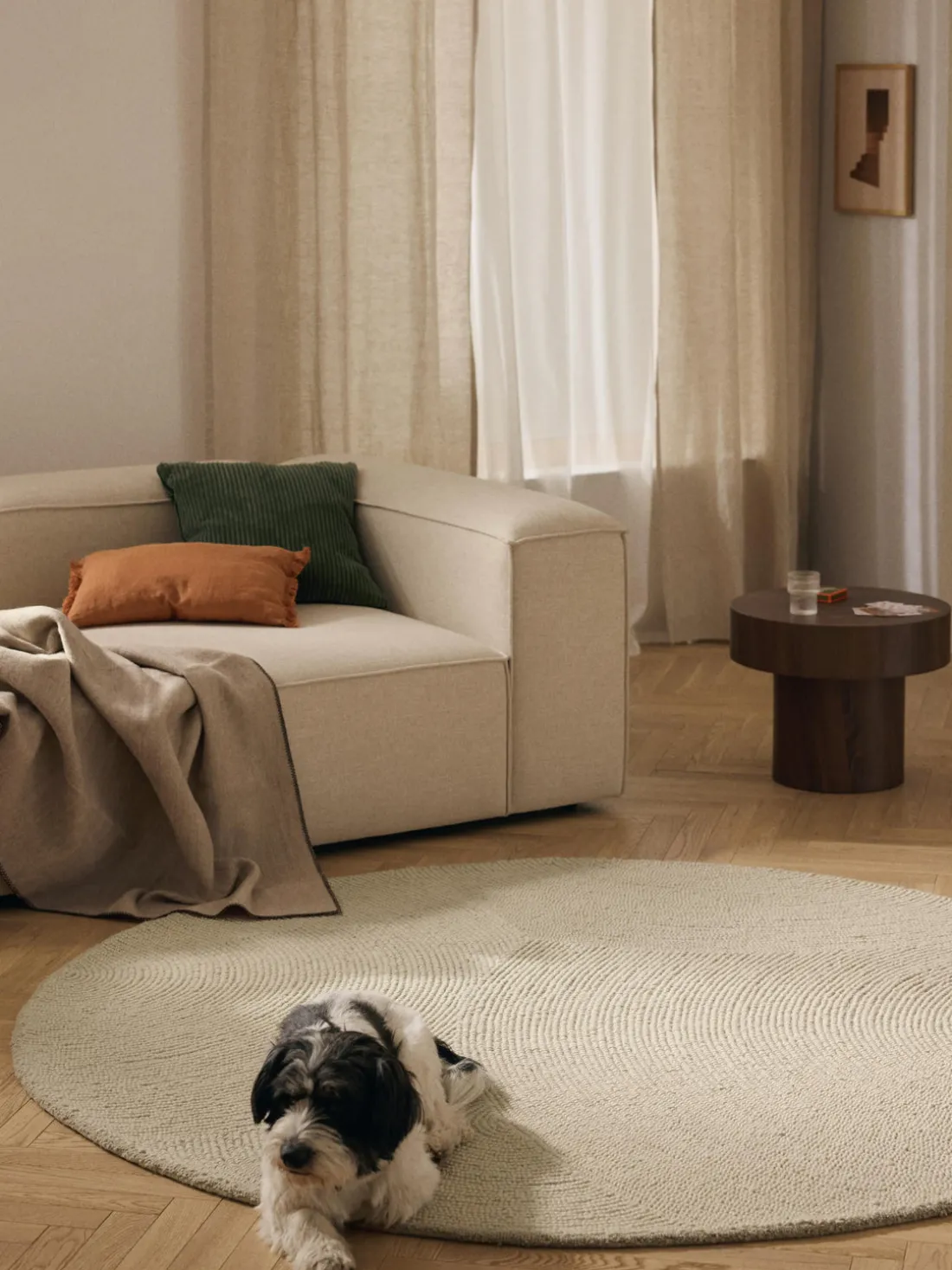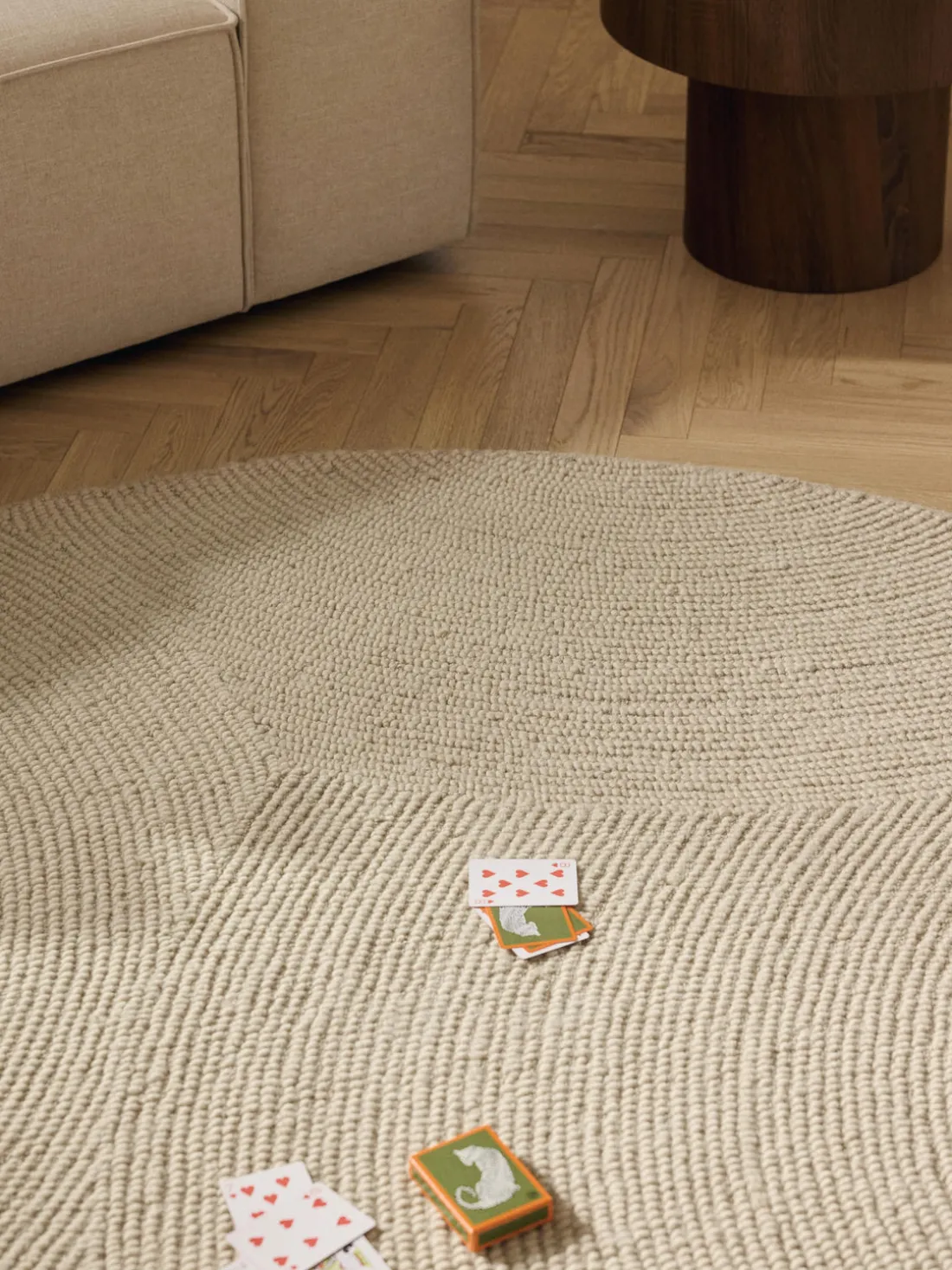 Alfombra de lana redonda artesanal de pelo corto Eleni