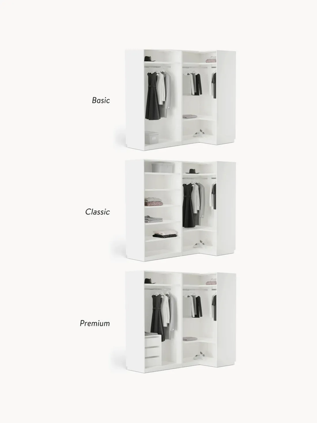 Armario esquinero modular Charlotte, 4 puertas (215 cm), diferentes variantes