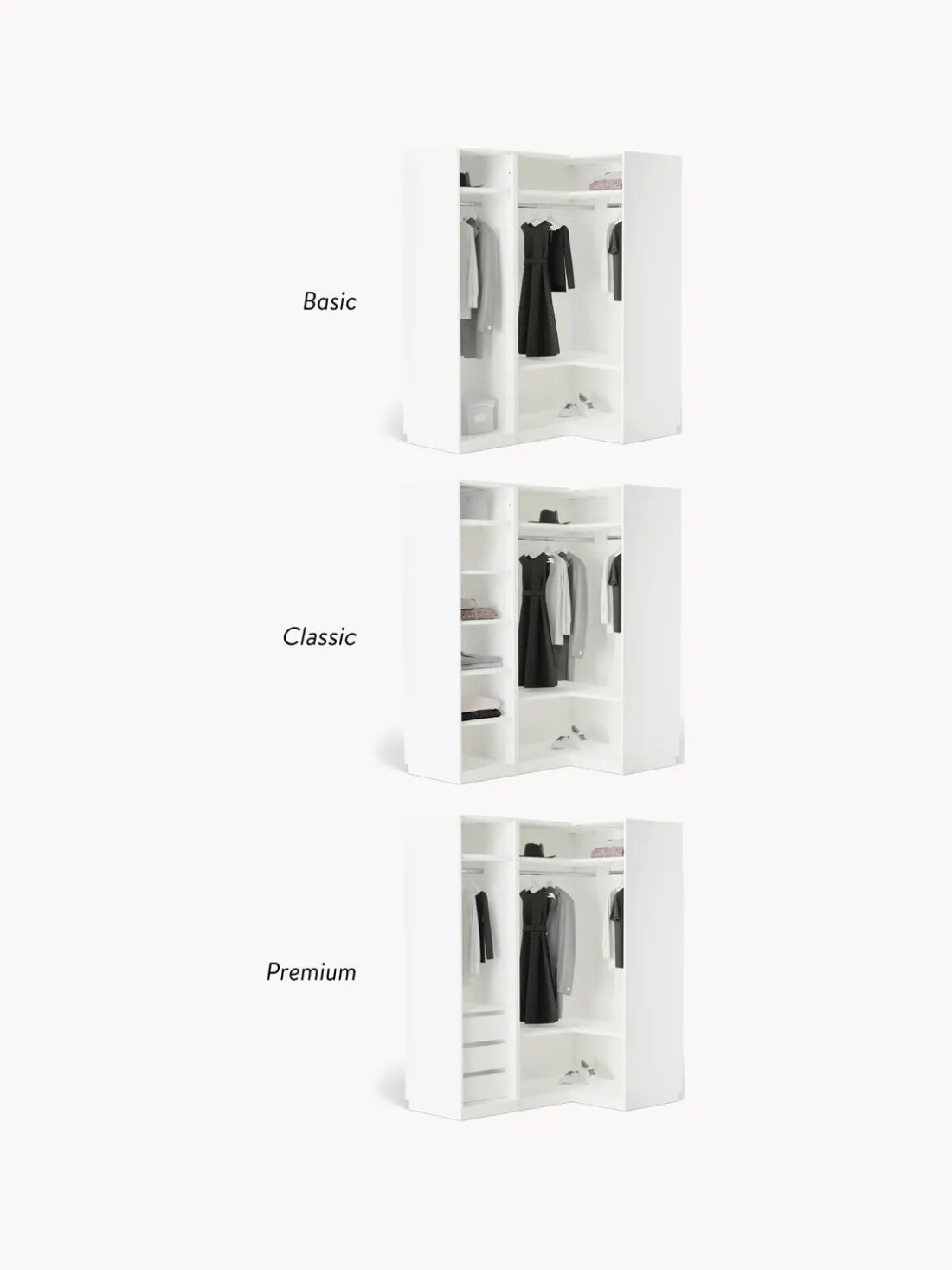 El diseño se mezcla con la funcionalidad. Diseña tu armario Leon a tu gusto combinando módulos individuales o ampliando el armario Leon ya existente. Todos los módulos Leon se pueden encontrar en nuestra gama.