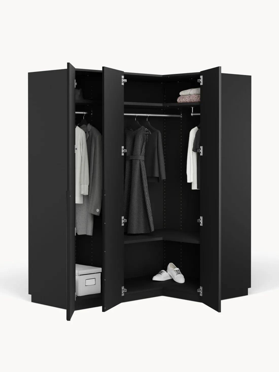 – El módulo esquinero incluye 2 barras para ropa, 2 estantes