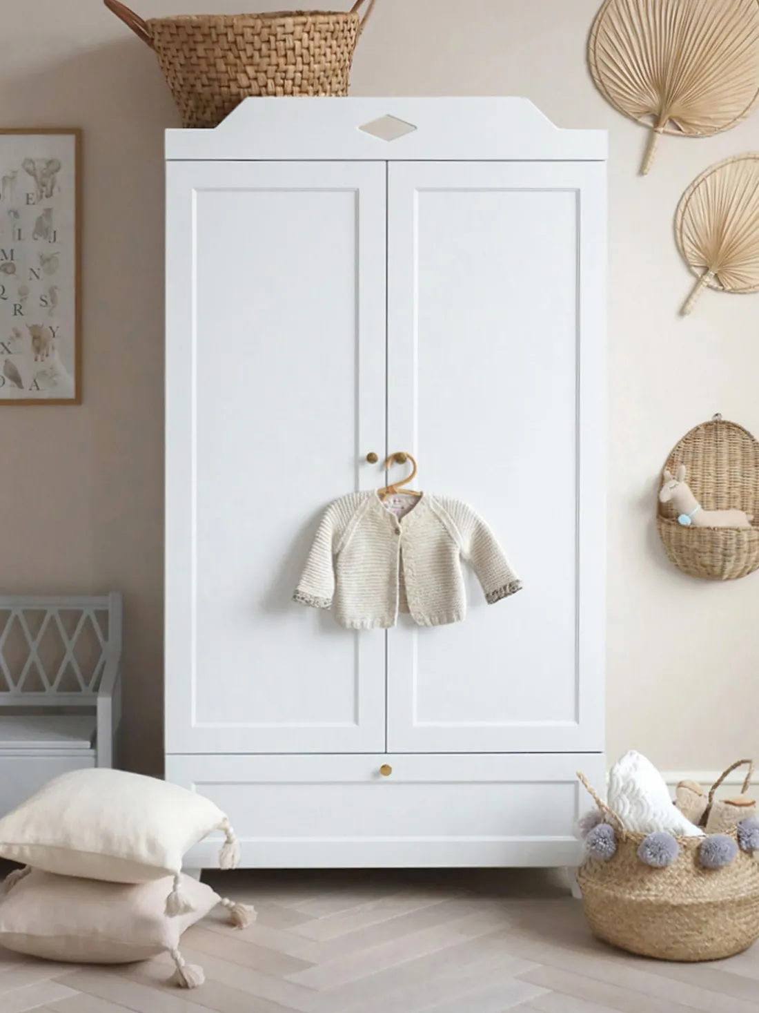 Esta nueva versión del armario LUCA es más profunda que la versión original y puede equiparse con perchas de tamaño estándar para encajar perfectamente en la mayoría de los dormitorios infantiles.