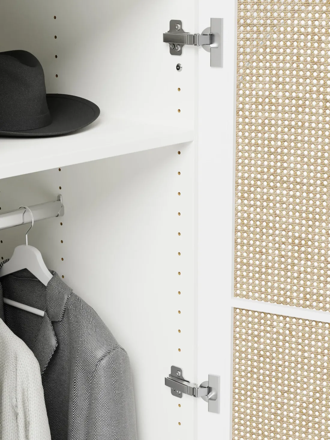 – Armario modular que consta de 1 módulo con diseño interior Basic que incluye 1 barra para colgar ropa y 1 estante