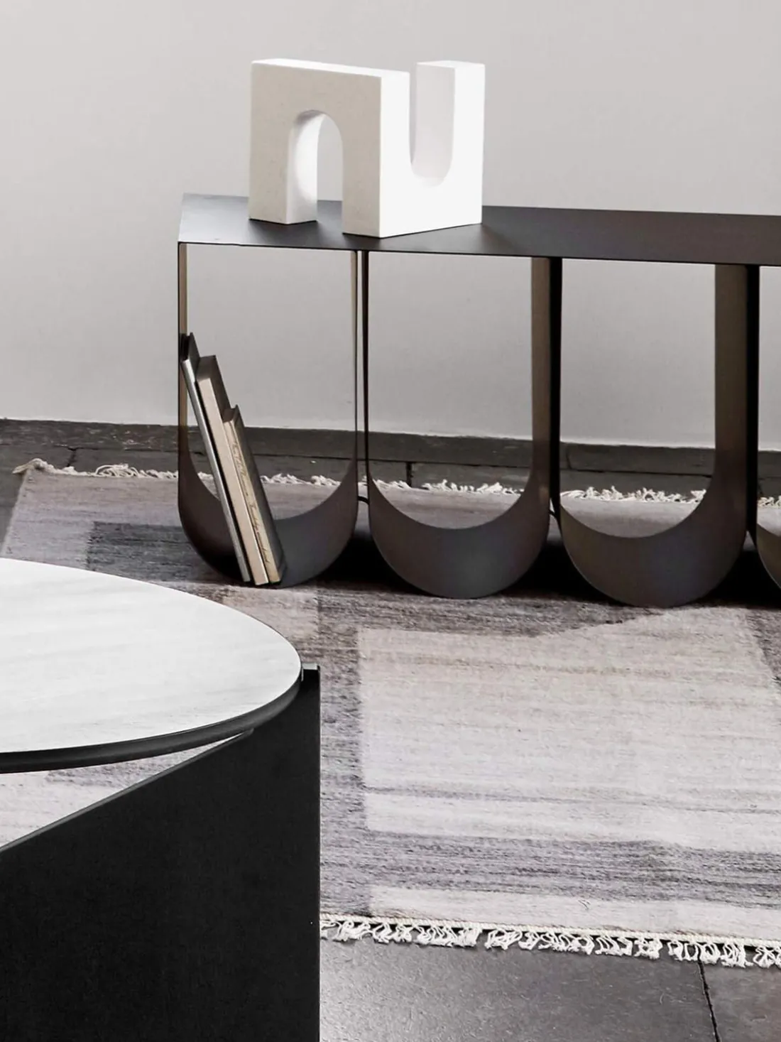 Con un diseño moderno y minimalista, Curved establece acentos llamativos y expresivos y combina estética escultórica y artesanal. Fabricado en acero, el banco también se puede utilizar como mesa de centro; su base curvada ofrece espacio para revistas u otros objetos pequeños.