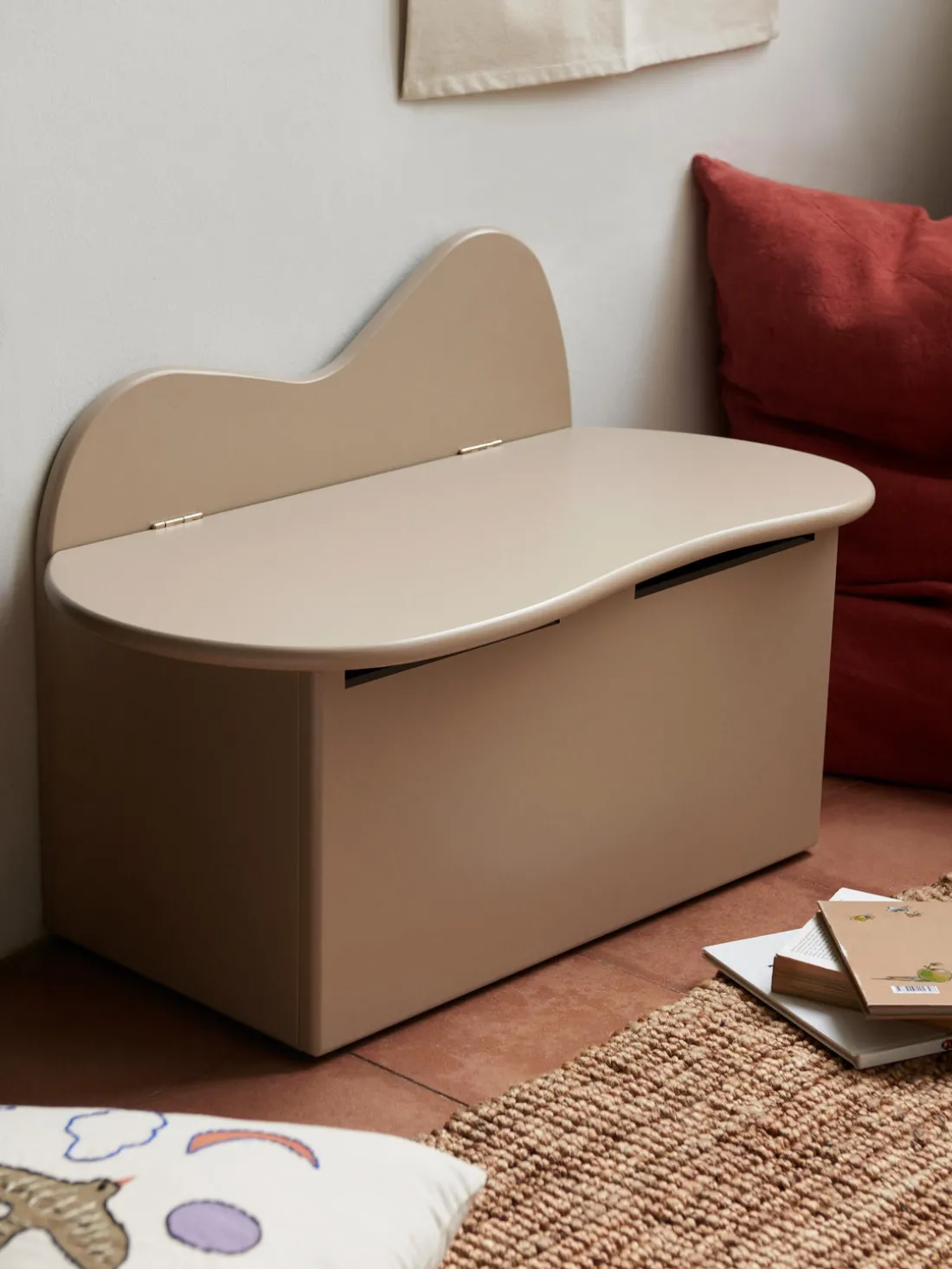 Aporta un toque orgánico y fantástico a la habitación infantil con el encantador banco Slope. Inspirado en los paisajes de colinas onduladas, el banco presenta formas onduladas distintivas. Con un práctico compartimento para ocultar el desorden y guardar juguetes, el banco Slope no sólo sirve como cómodo asiento para que tu hijo disfrute de un momento tranquilo con su libro favorito, sino también como práctica solución de almacenamiento para el cuarto de los niños.