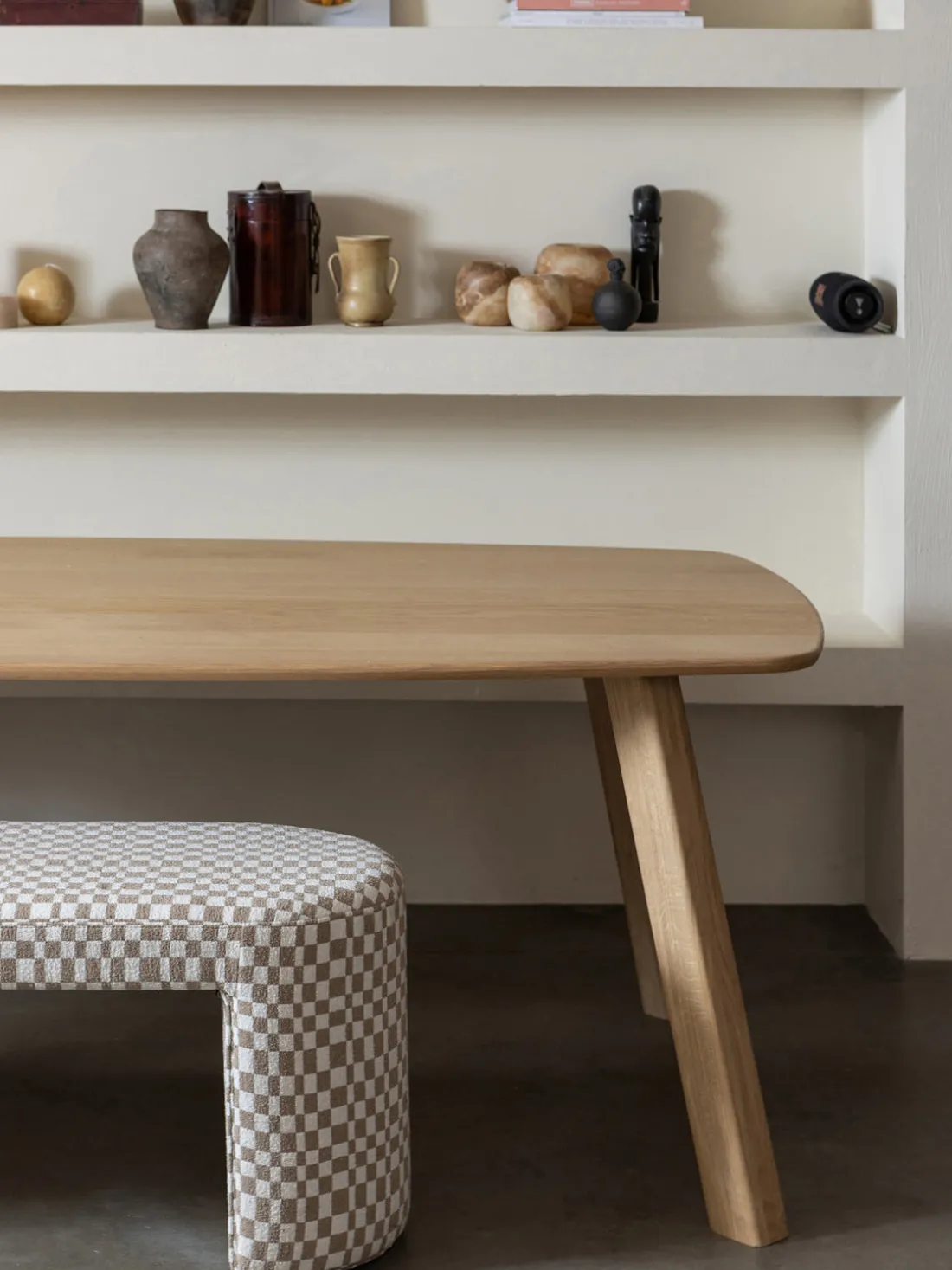 El banco Jacob es una pieza llamativa de la colección de la marca de diseño de interiores holandesa WOOOD. Todo el banco está tapizado con el exclusivo tejido Chess, que confiere al diseño un aspecto simpático. El amplio asiento ofrece espacio suficiente para entre dos y tres personas, y la modesta profundidad de este mueble lo hace muy poco profundo.