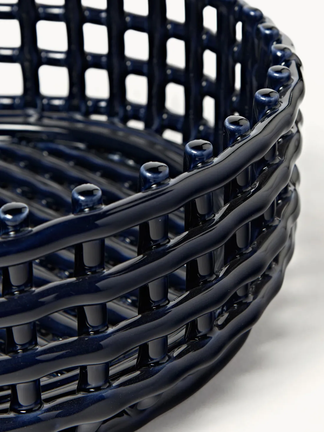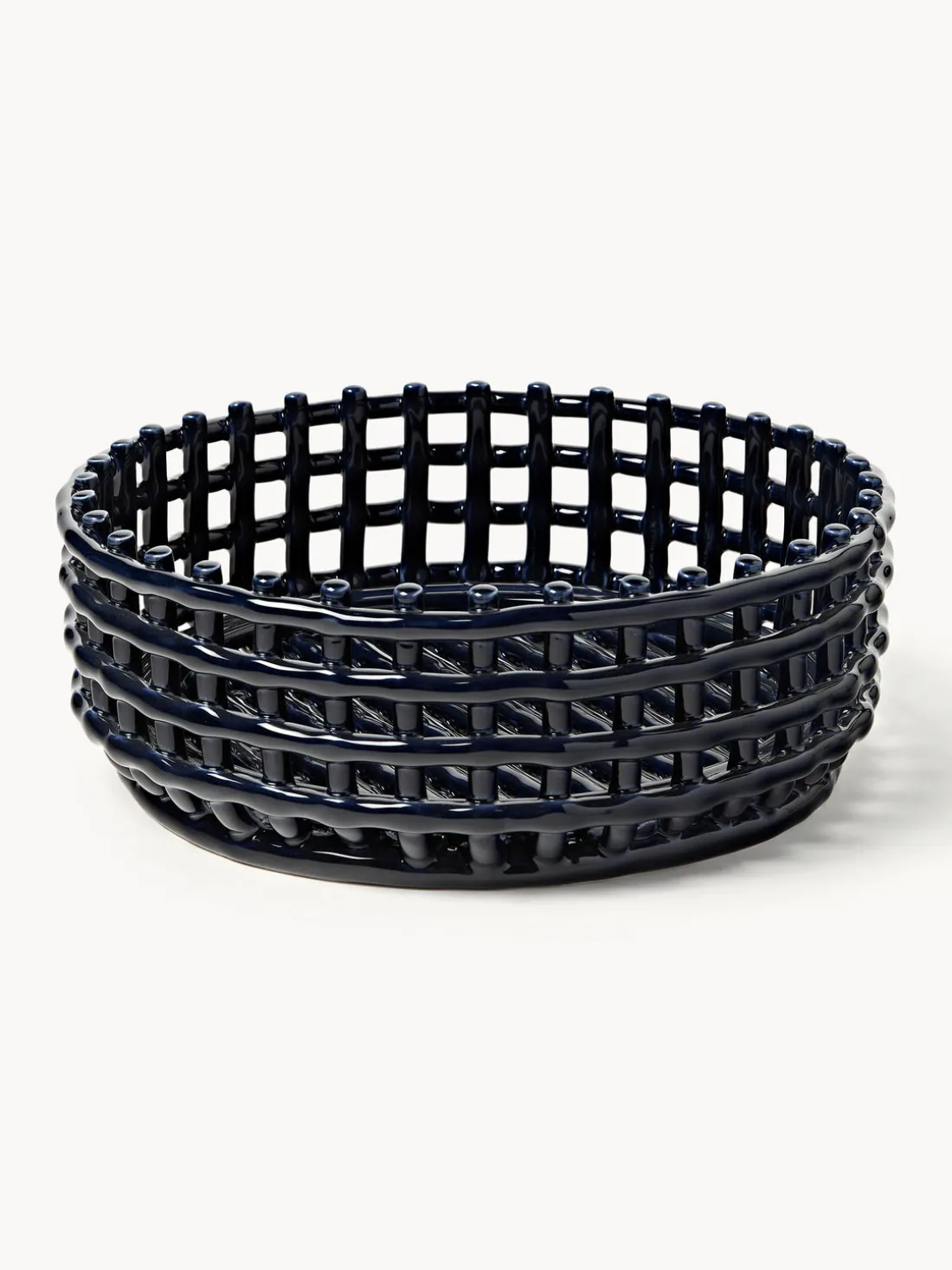 El cuenco decorativo hecho a mano Centrepiece evoca la sensación familiar de los recipientes tejidos y lleva la cestería tradicional a la cerámica. Este diseño multifuncional es ideal como frutero o panera, y sin duda será el centro de atención en cualquier mesa. Las piezas, moldeadas a mano y artísticamente irregulares, son únicas.