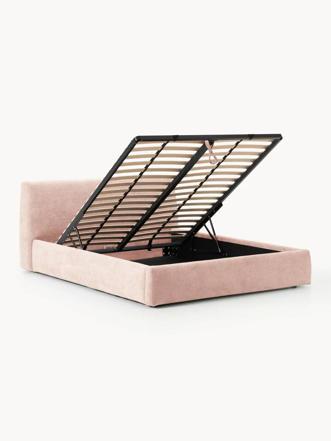 Cama tapizada con espacio de almacenamiento.