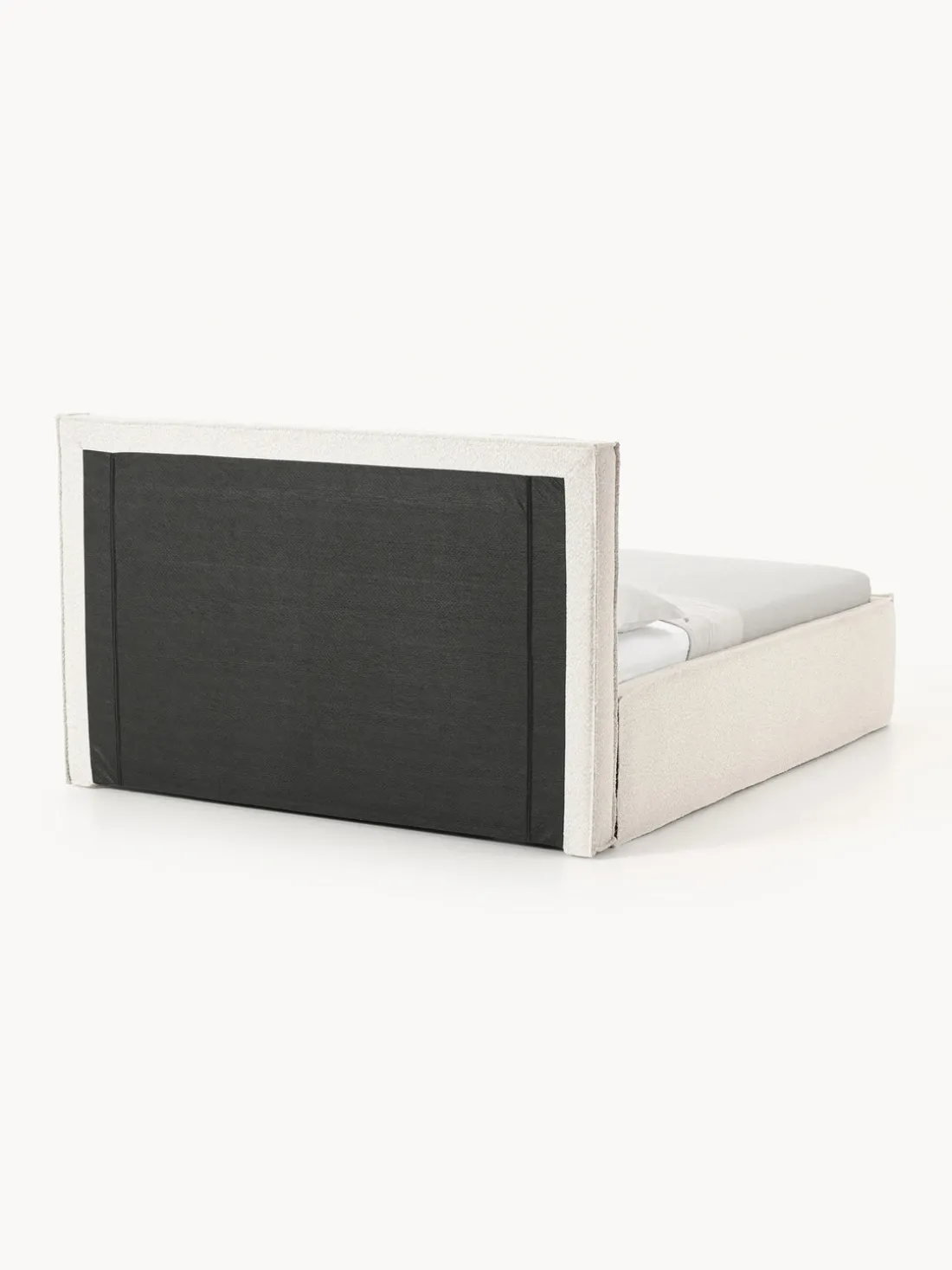 Cama tapizada con espacio de almacenamiento.