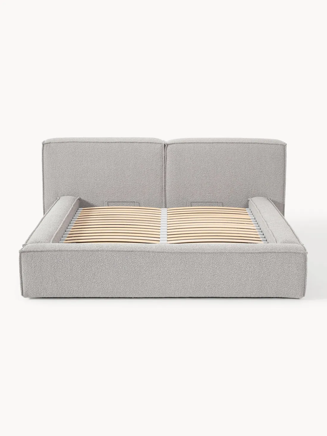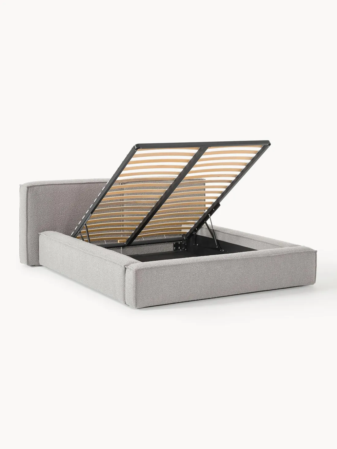 Cama tapizada con espacio de almacenamiento.