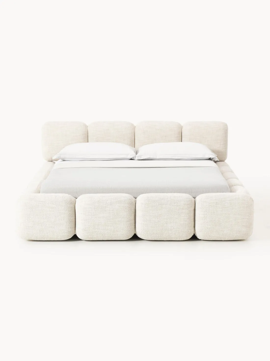 Cama tapizada con espacio de almacenamiento.