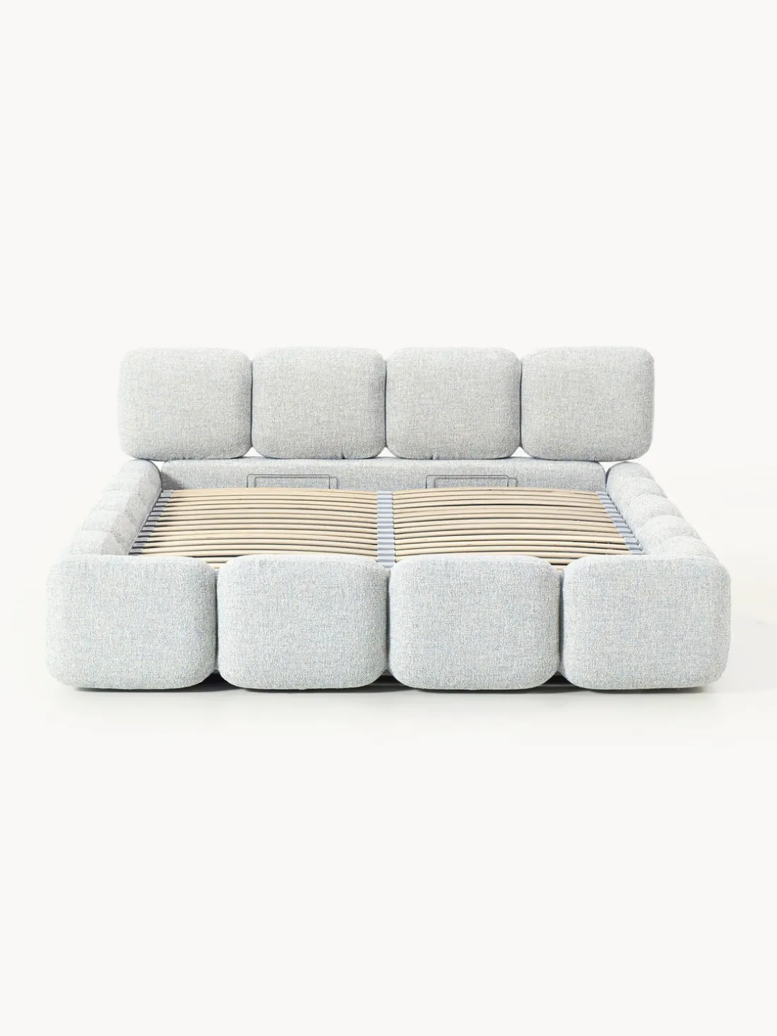 Cama tapizada con espacio de almacenamiento.