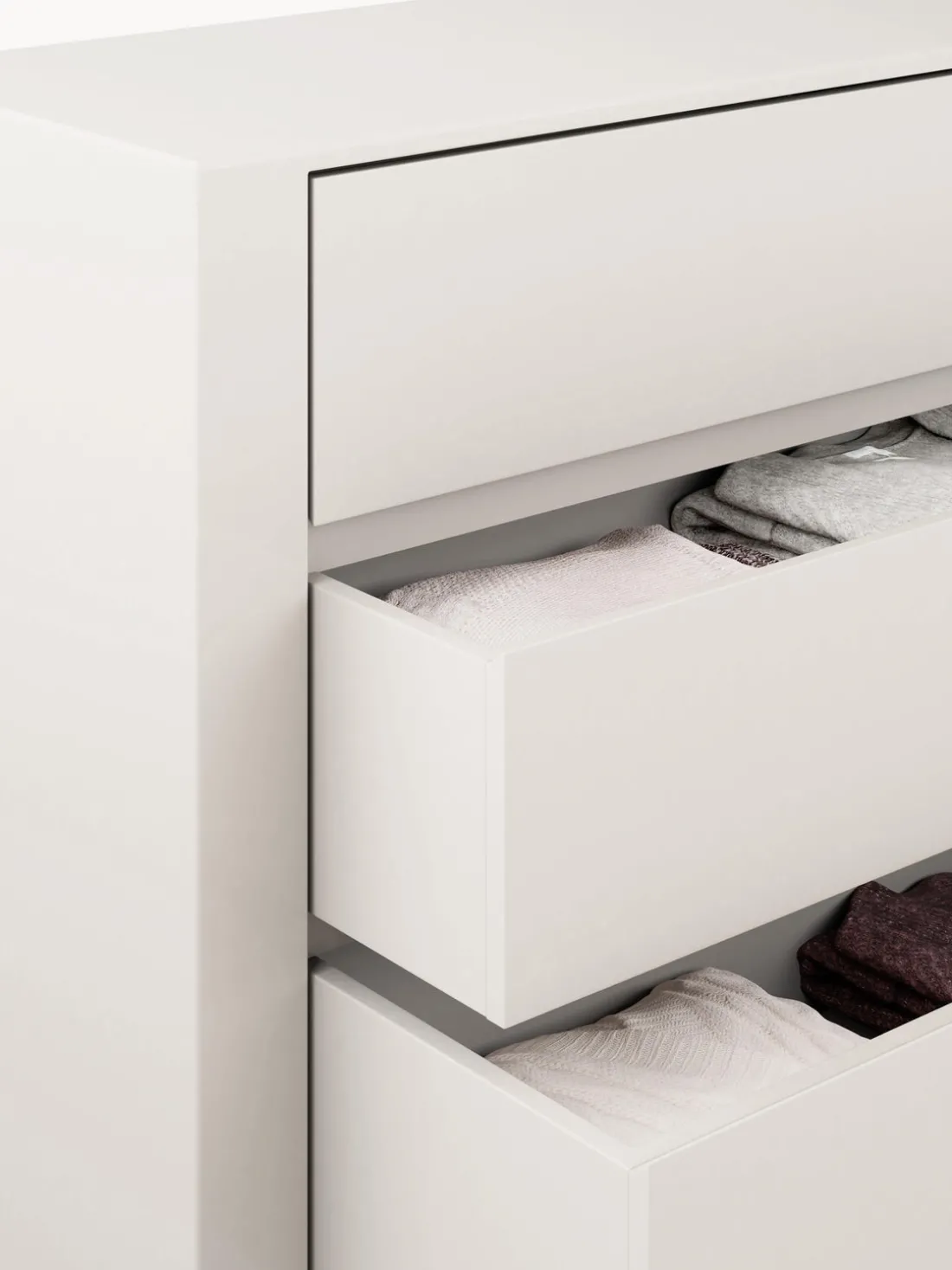 Con cajones con sistema Soft-Close (cierre ralentizado) lo que hace que sea silencioso.