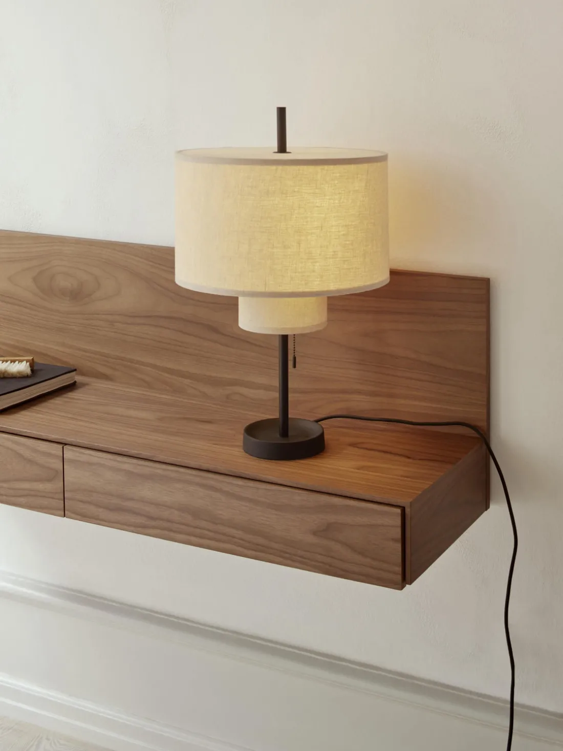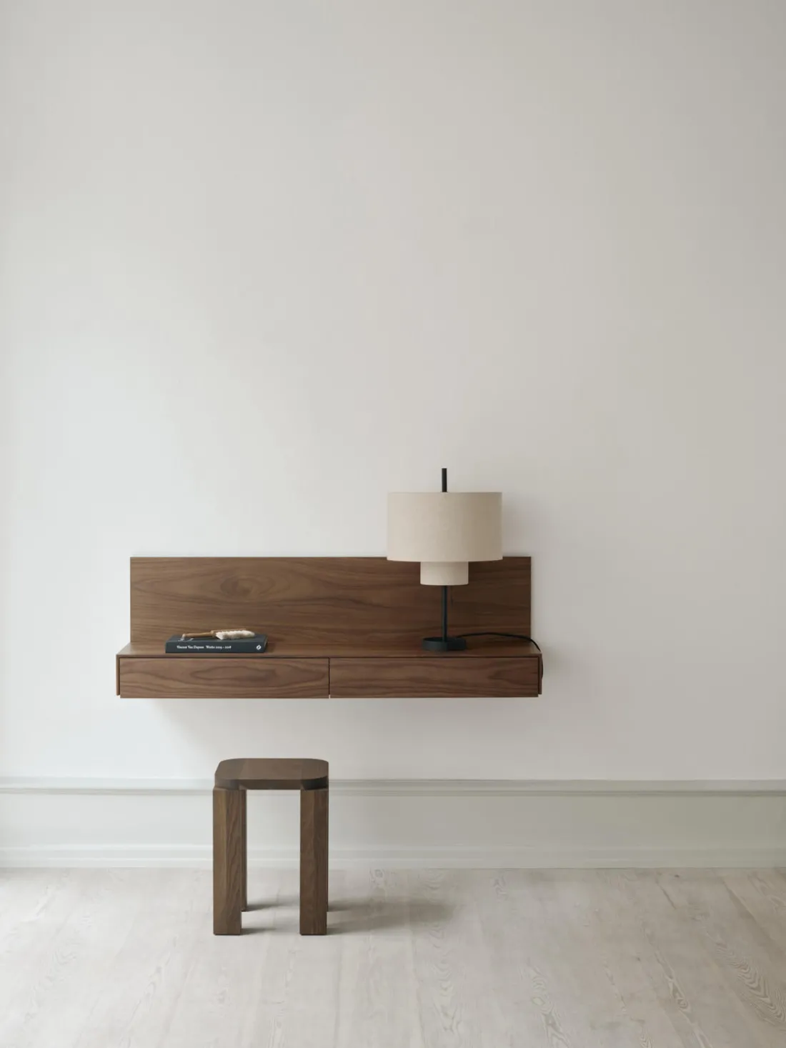 La consola de pared tiene dos cajones.