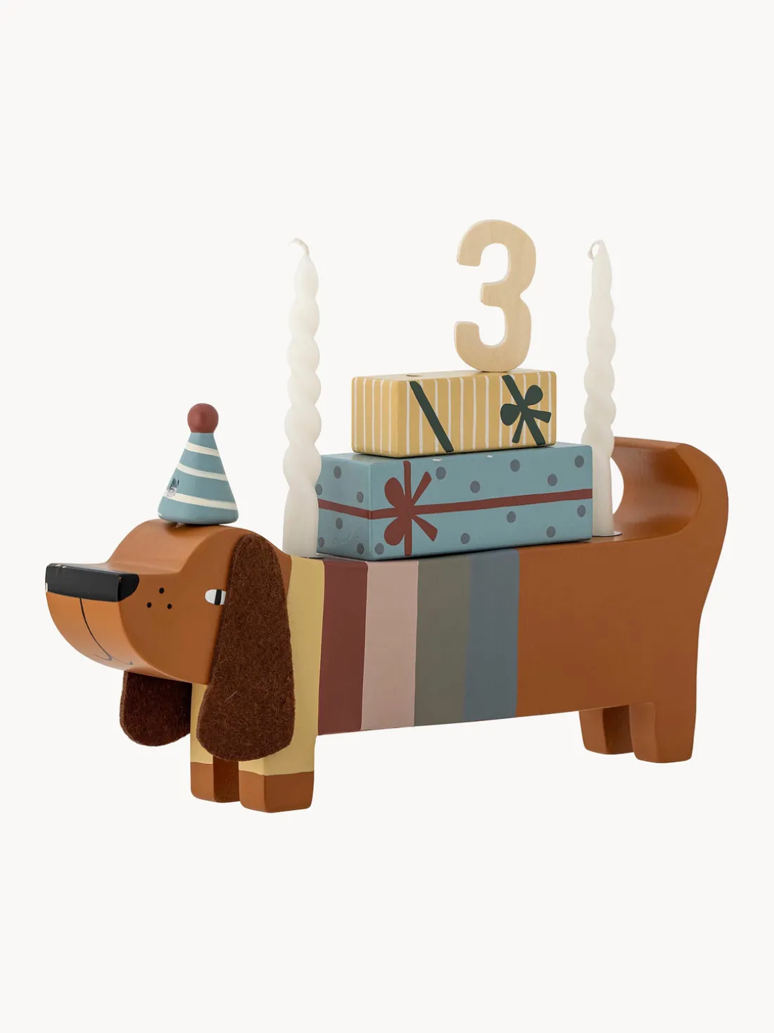 La decoración de cumpleaños CHARLIE de Bloomingville MINI es festiva y acogedora para el cumpleaños de un niño. La decoración de madera de loto certificada FSC muestra al fiel perro Charlie. Ofrece espacio para dos velas y tiene números del 0 al 9 en la parte trasera. La decoración se entrega en una bonita caja de regalo y es la idea de regalo perfecta. Haz del cumpleaños de tus hijos algo muy especial con la decoración de cumpleaños de Charlie y crea recuerdos que durarán mucho tiempo.