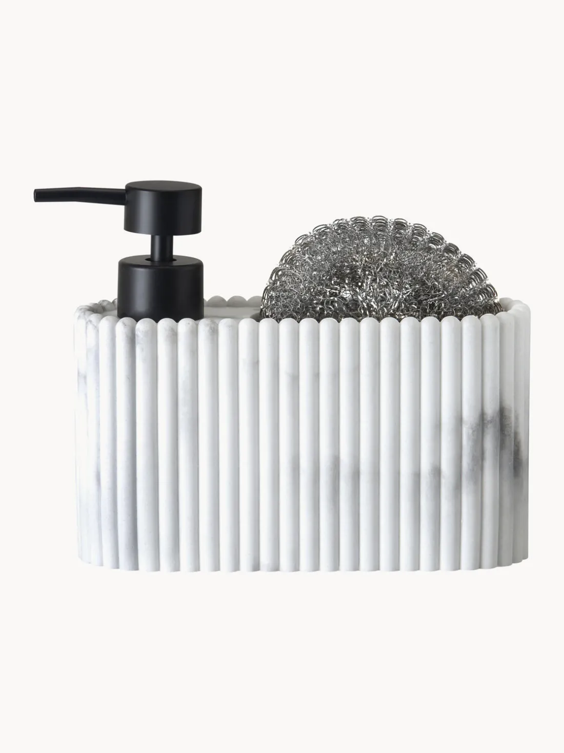 El dispensador de jabón en look mármol es un accesorio sofisticado y funcional para tu baño o cocina. Con su elegante diseño que imita el mármol verdadero, añade un toque moderno y sofisticado a tu estancia. Fabricado en poliresina de alta calidad, es robusto y fácil de cuidar: ideal para el uso diario. Gracias al preciso sistema de dosificación, podrás manipular cómodamente el jabón u otros líquidos para que todo esté siempre en orden. Perfecto para quienes buscan equilibrar estilo y practicidad en los accesorios de tu hogar.