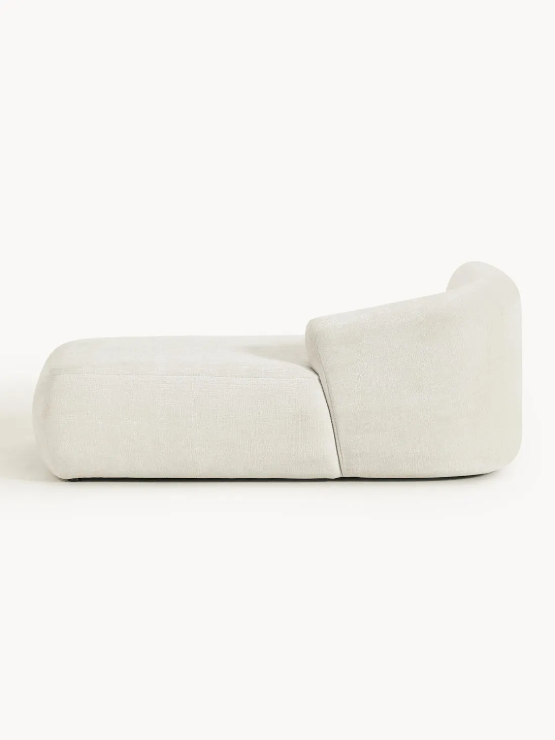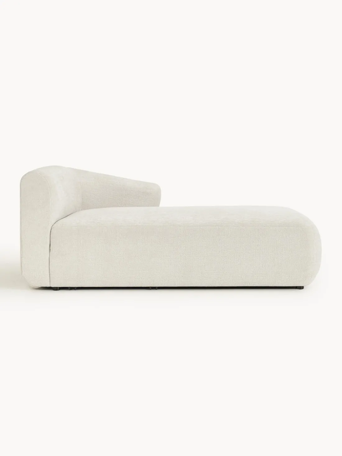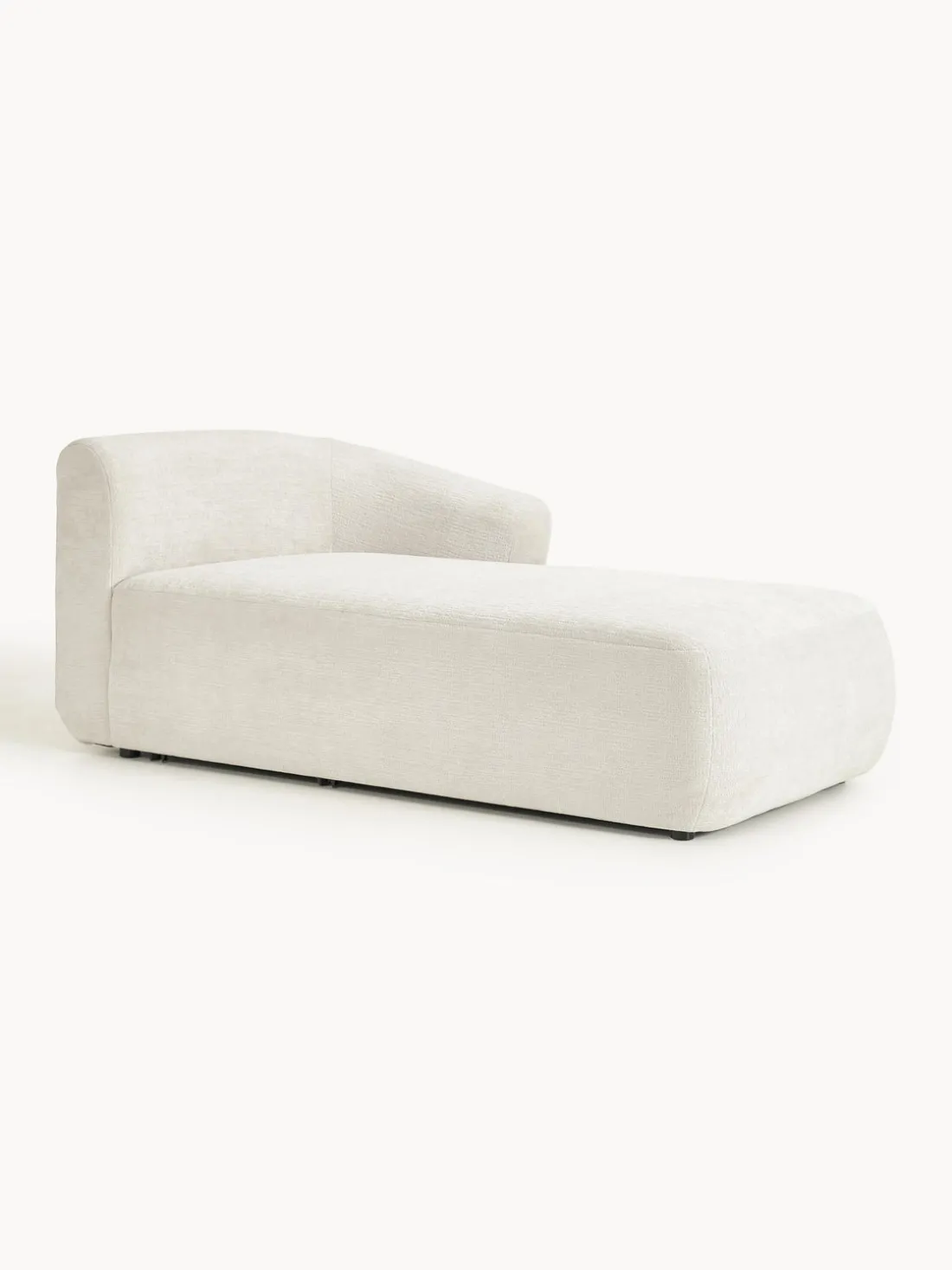 La chaise longue está en el lado derecho cuando estás frente al sofá.
