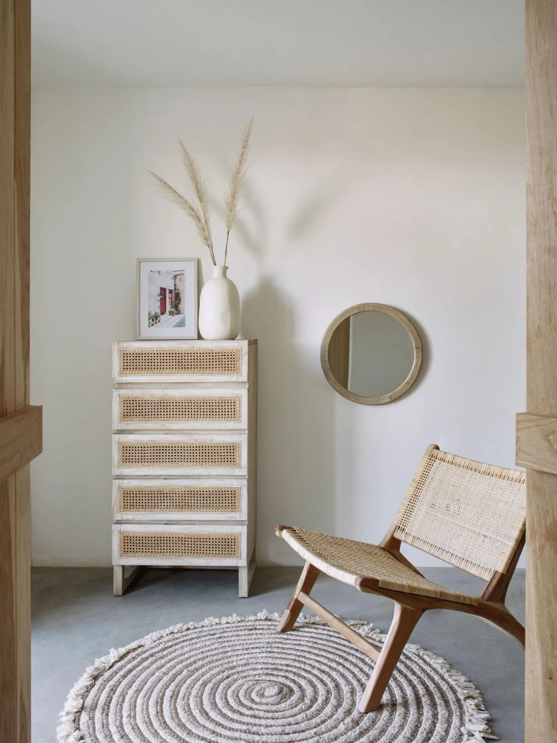 El espejo de pared ALUM es su elegante compañero diario. Con su diseño redondo y su marco natural, aporta una estética atemporal a cualquier estancia. Perfecto para dar el toque final a tu hogar.