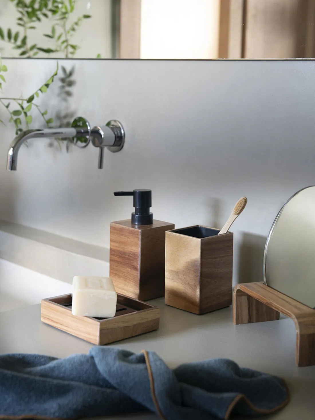 El espejo cosmético es un producto elegante y funcional que añade calidez y sofisticación a cualquier estancia. Fabricado en madera de acacia, enfatiza el diseño robusto y natural y al mismo tiempo aporta un estilo moderno y atemporal a tu hogar.