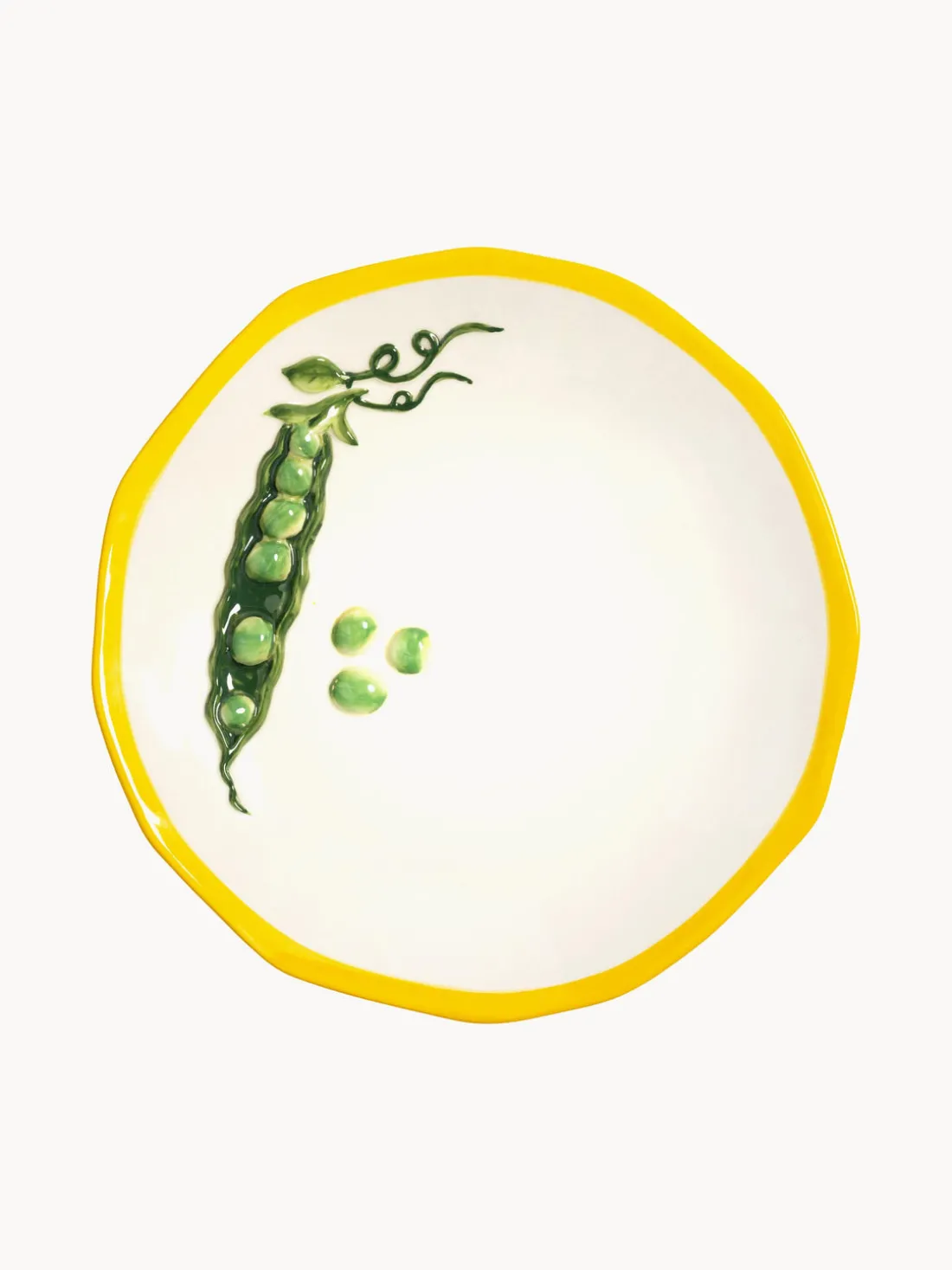 Esta fuente desprende un encanto rústico que la hace ideal para el uso diario. Lo que hace que esta fuente sea realmente especial es su elemento decorativo: un sutil diseño de guisantes que se integra perfectamente en la artesanía. Este fino detalle confiere a la fuente redonda un toque encantador y natural. Perfecta para presentar una amplia variedad de platos, desde ensaladas frescas hasta antipasti, esta pieza combina funcionalidad y estilo artístico.