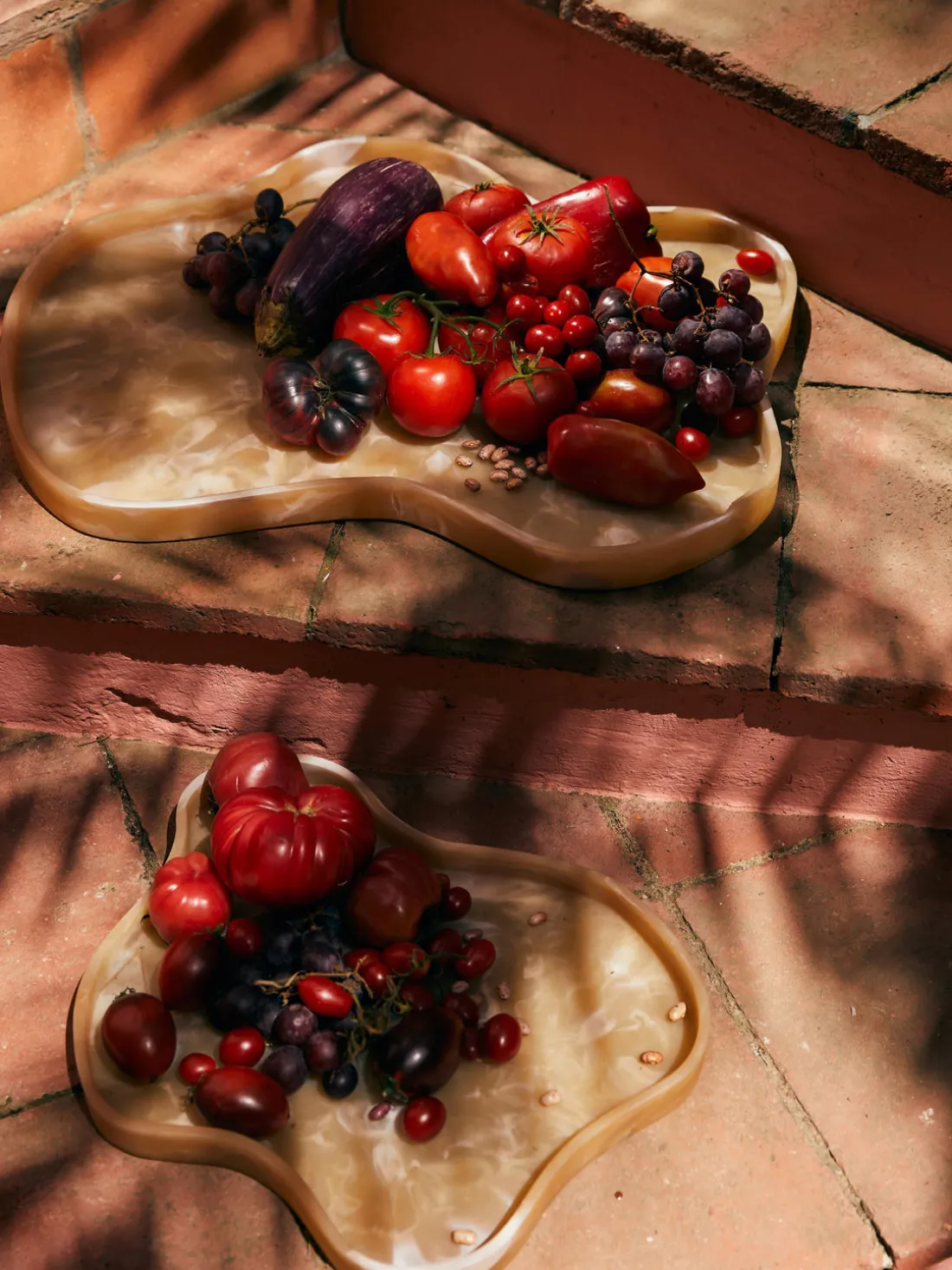 Eleva tu experiencia gastronómica con esta impresionante bandeja PATIO, cuyo patrón suavemente jaspeado varía con cada pieza, haciendo que cada bandeja sea realmente única. Inspirada en el encanto de las mesas mediterráneas, esta bandeja de resina es perfecta para las largas veladas a la mesa. Su forma orgánica y sus cálidos tonos de color aportan un toque de elegancia y carácter, convirtiéndola en una opción ideal para servir o como centro de mesa decorativo.