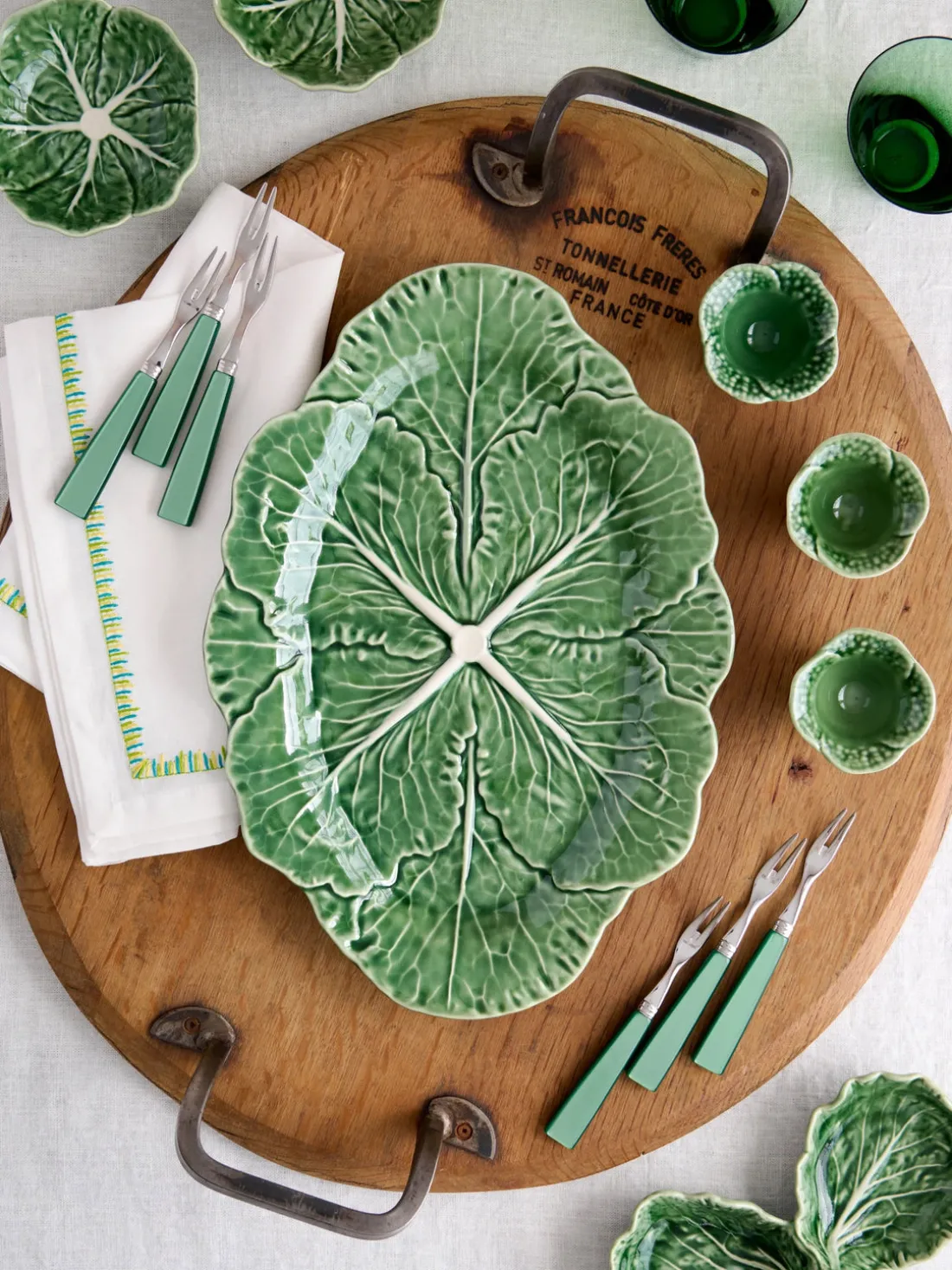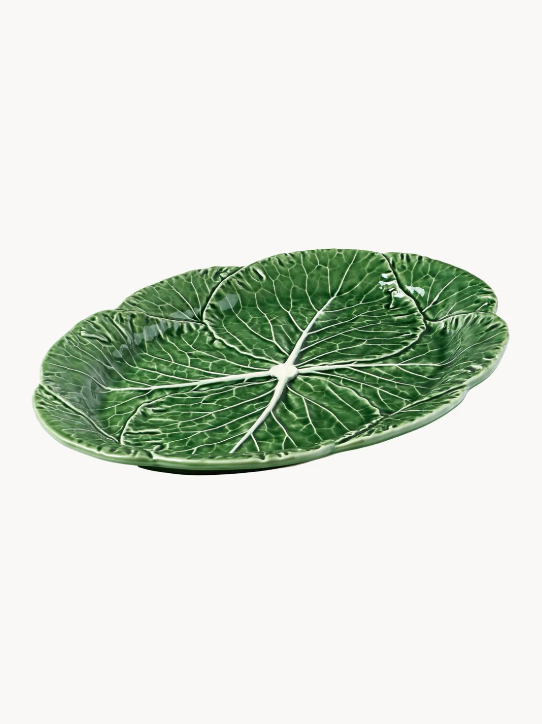 Esta fuente ovalada CABBAGE fascina por su apariencia de hoja de col increíblemente natural. Esta artística fuente es perfecta para servir entrantes o como elemento decorativo en la mesa.