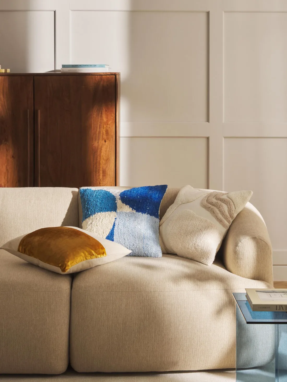 CORALINE impresiona con sus patrones abstractos y ondulados, elaborados artísticamente en la parte delantera con elaborados mechones y bordados de cordón. ¡Una verdadera delicia para los ojos en tu sofá o cama!