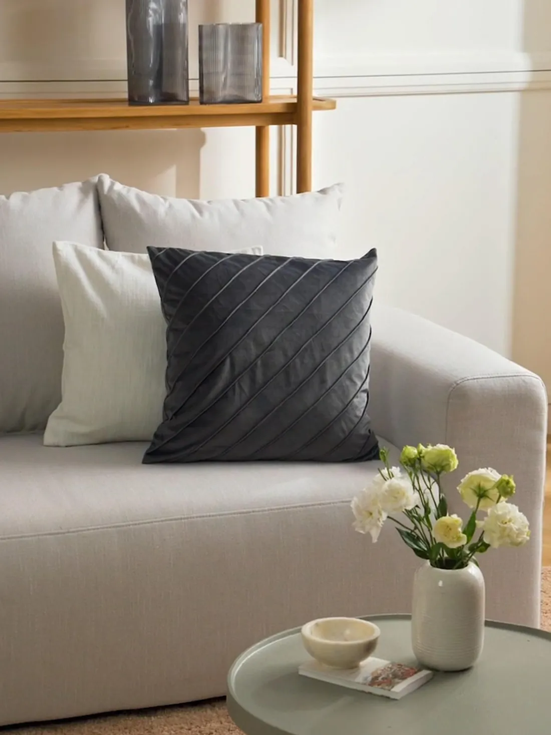La funda de cojín se entrega sin relleno, tipo de cierre con cremallera.