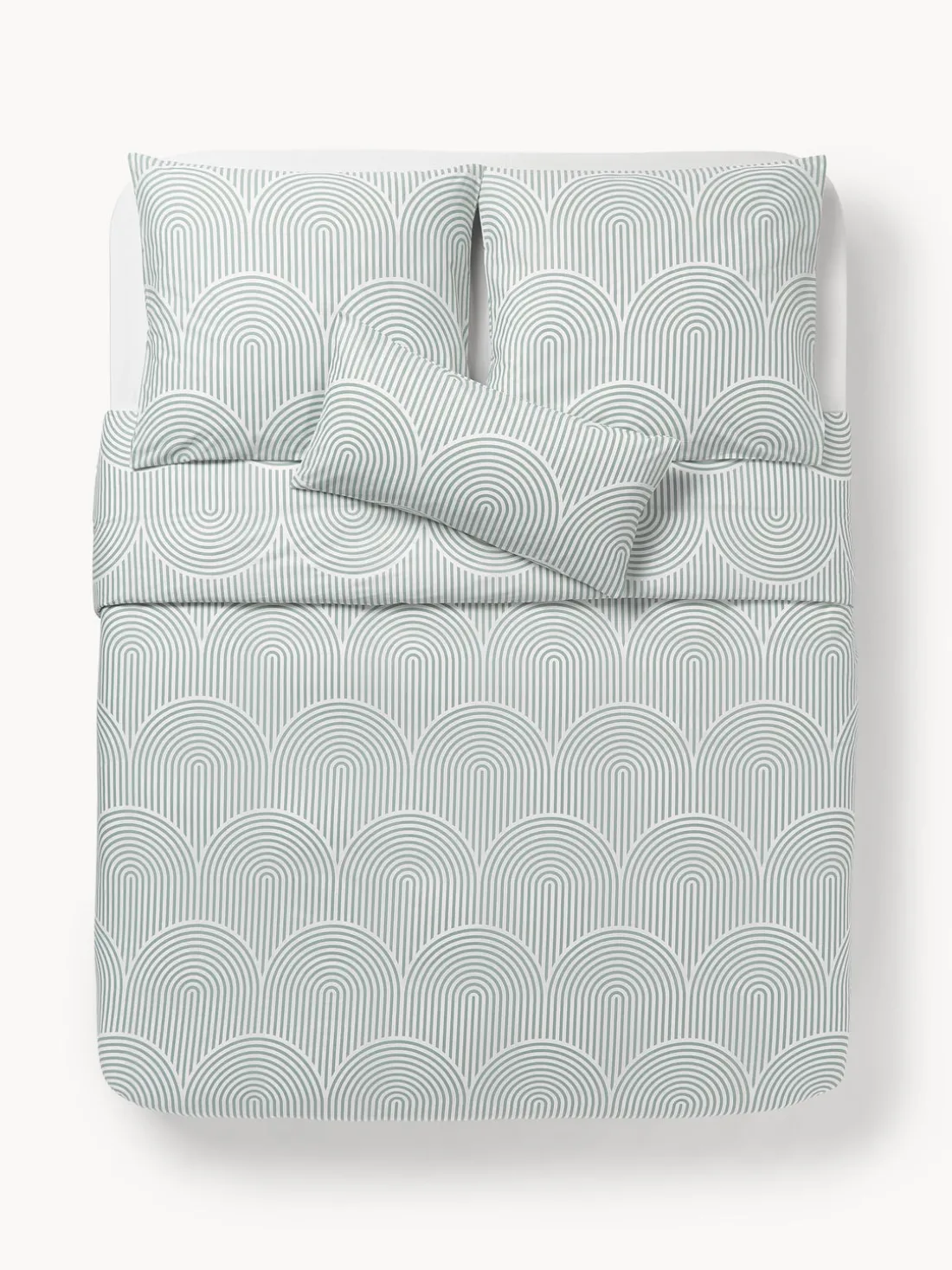 Aporta un soplo de aire fresco a tu dormitorio con ARCS. Esta ropa de cama de algodón reforzado presenta un llamativo diseño geométrico de arcos en ambas caras. Es un estampado moderno que dará a tu dormitorio un aspecto y una sensación contemporáneos.