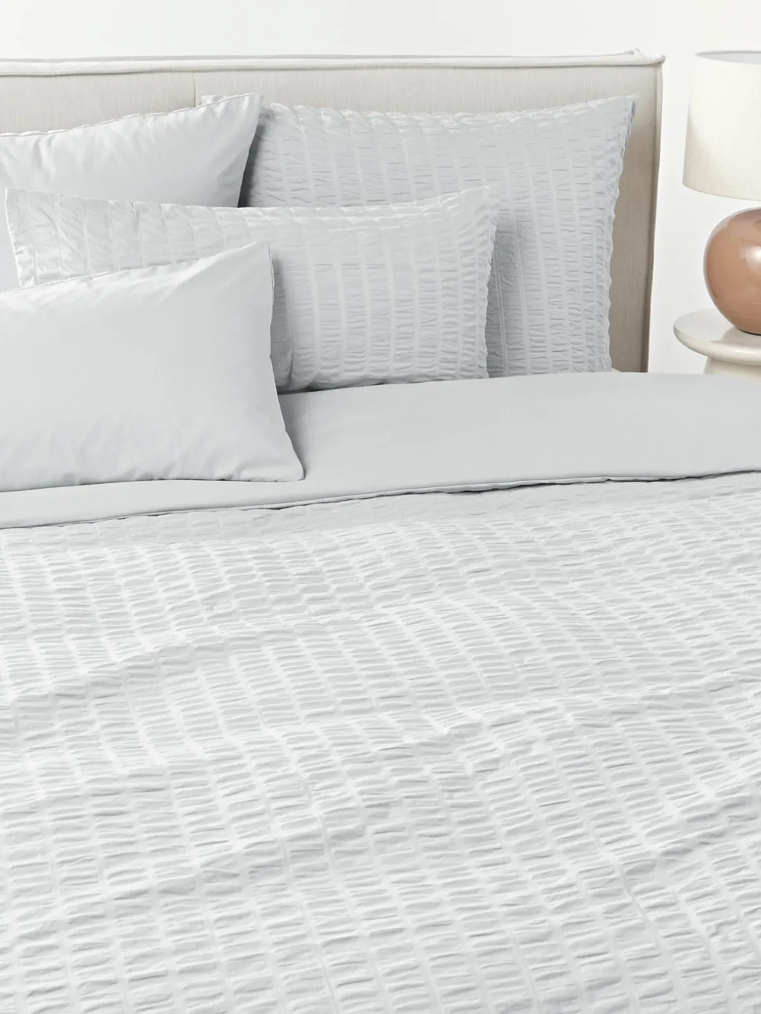 Funda nórdica de algodón con diferentes texturas en la parte delantera y trasera, tipo de cierre de botones.