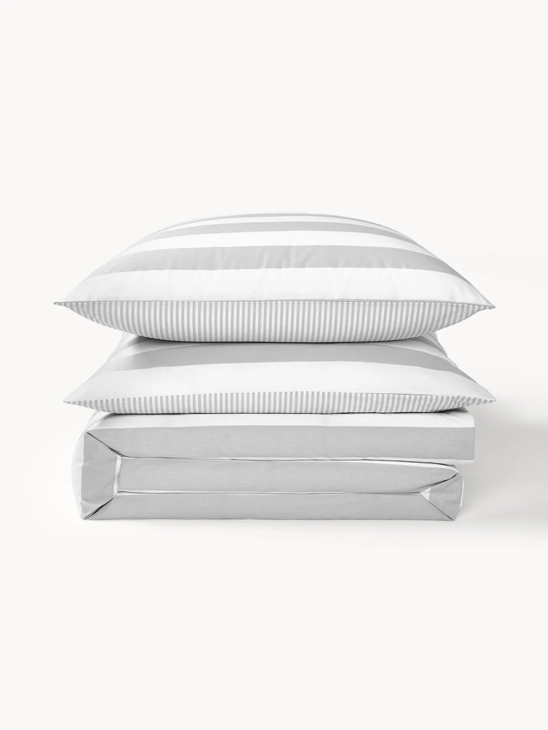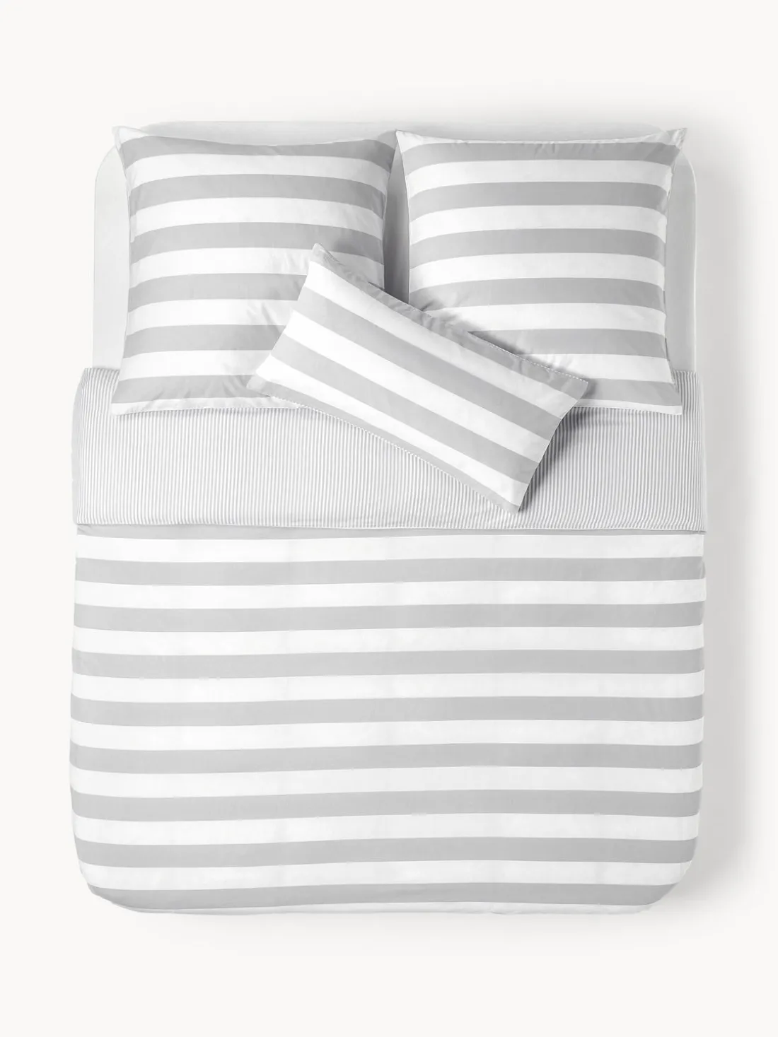 La funda nórdica de algodón reversible le da a tu dormitorio un aspecto moderno: la parte delantera con rayas horizontales anchas, la parte trasera con rayas finas.