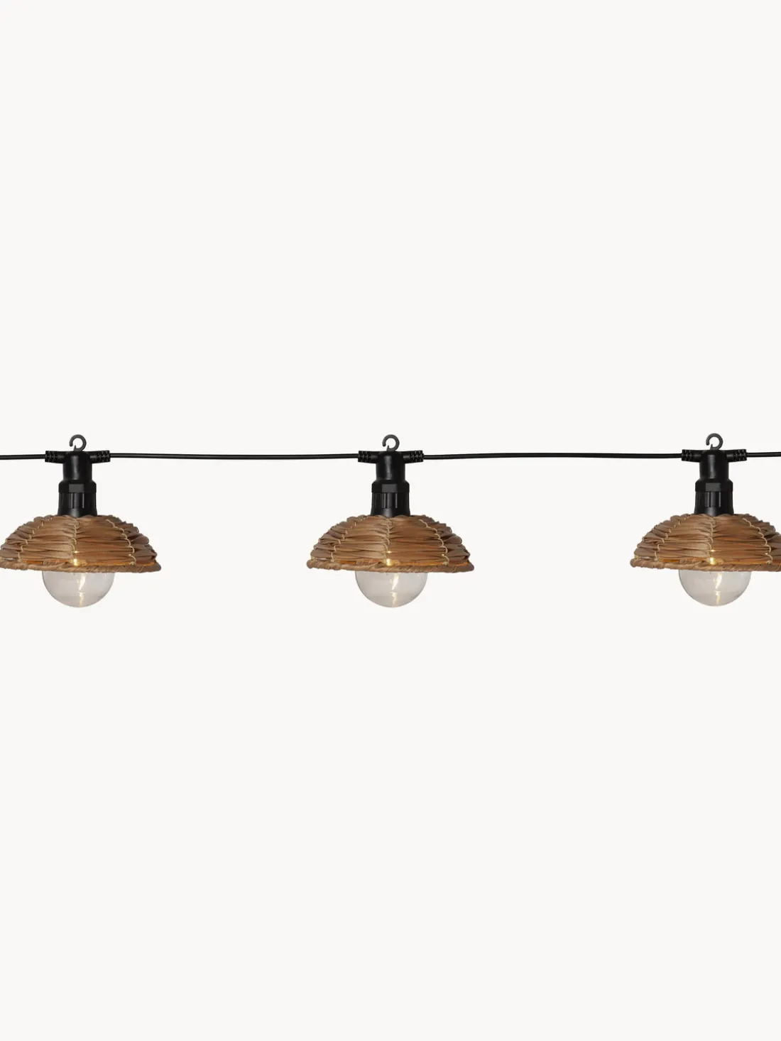 Guirnalda de luces con 6 bombillas, se conecta con un enchufe. Brilla en color blanco cálido.