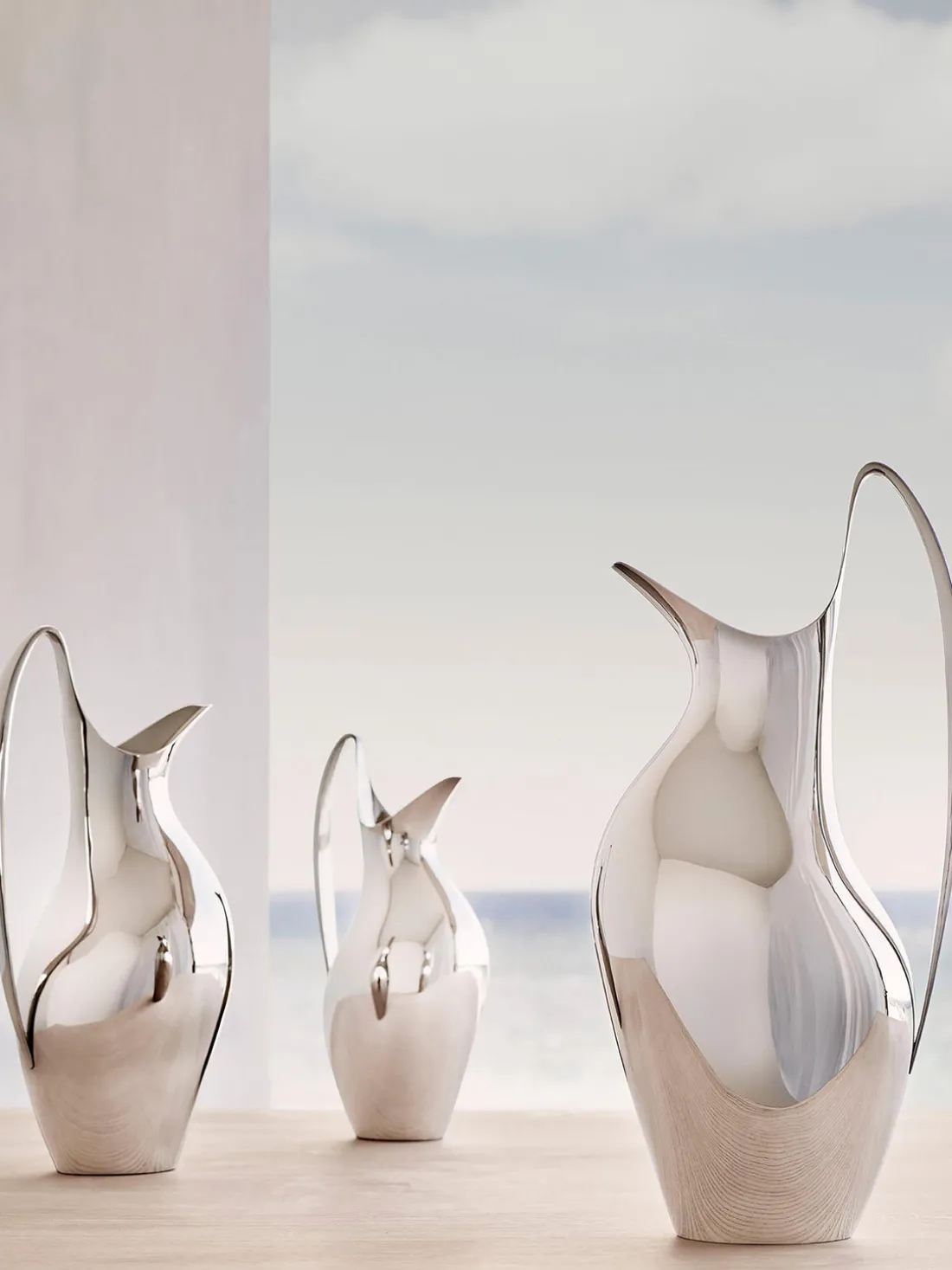 El jarro con suprficie de espejo Bloom está fabricado en acero inoxidable con un acabado pulido de alto brillo.