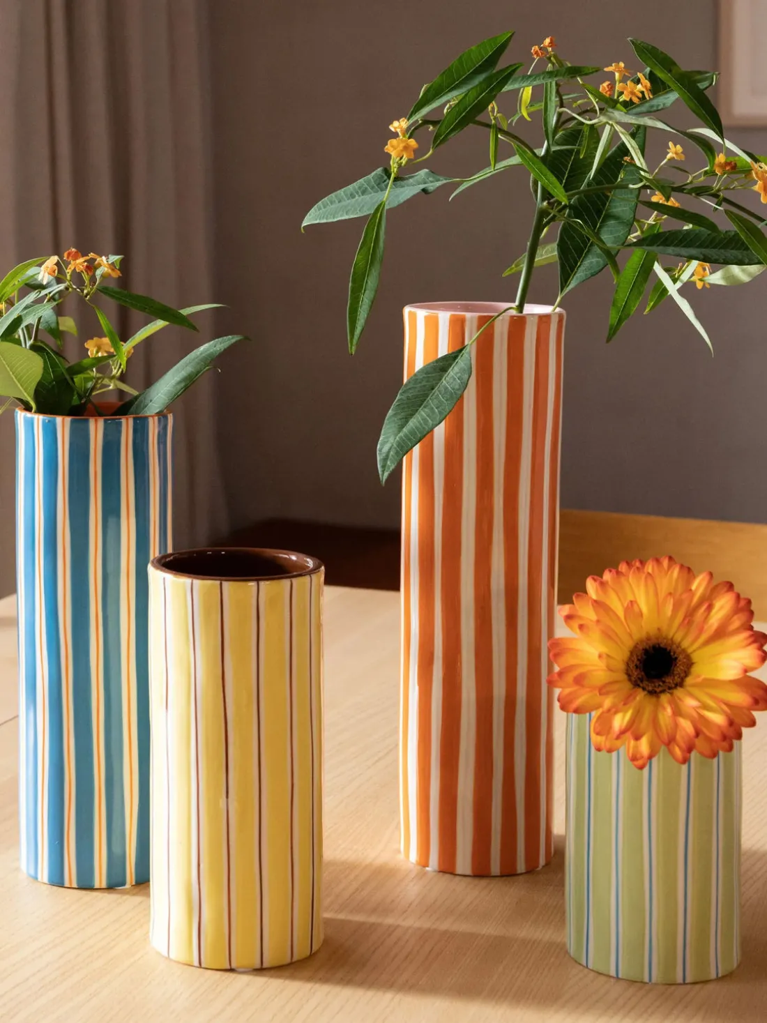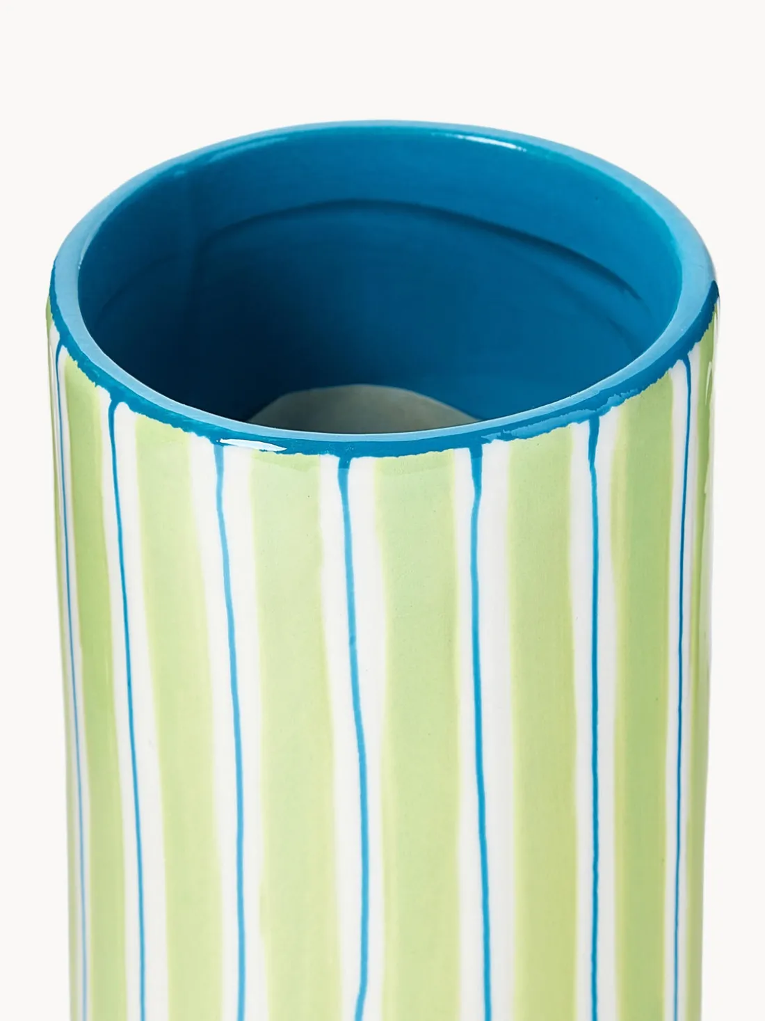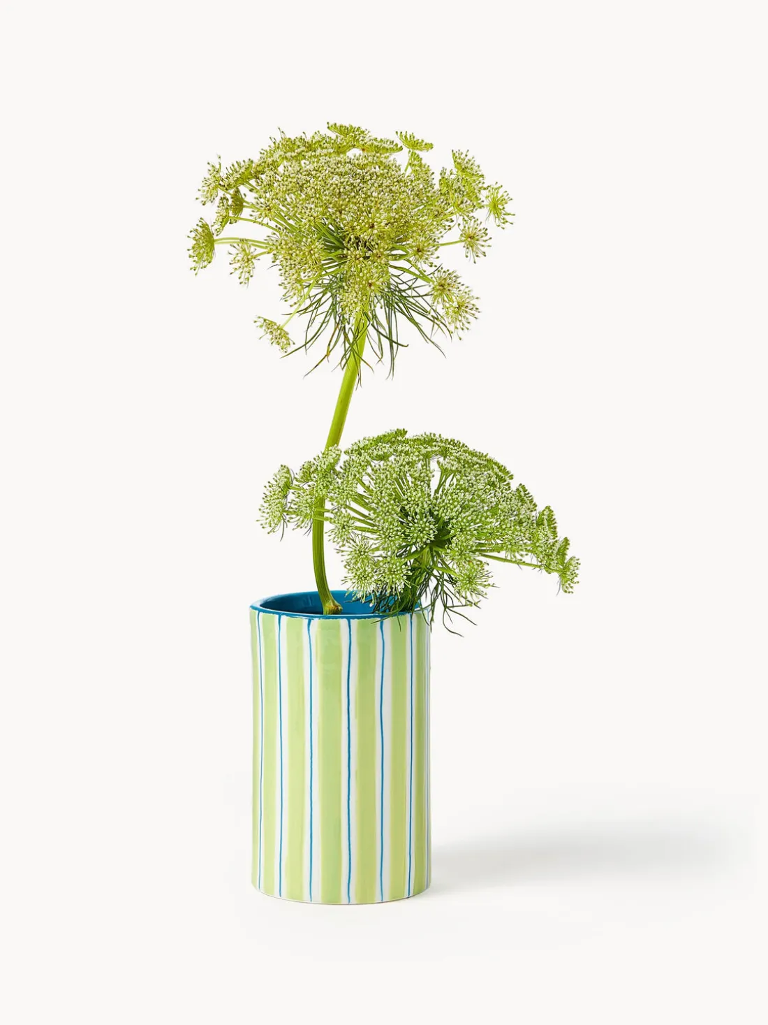 Este jarrón Ray forma parte de la conocida serie de jarrones Ray. Tiene un diseño a rayas pintado a mano y una forma irregular que le da un aspecto único. Combínalo con la maceta Ray para conseguir un elegante conjunto.