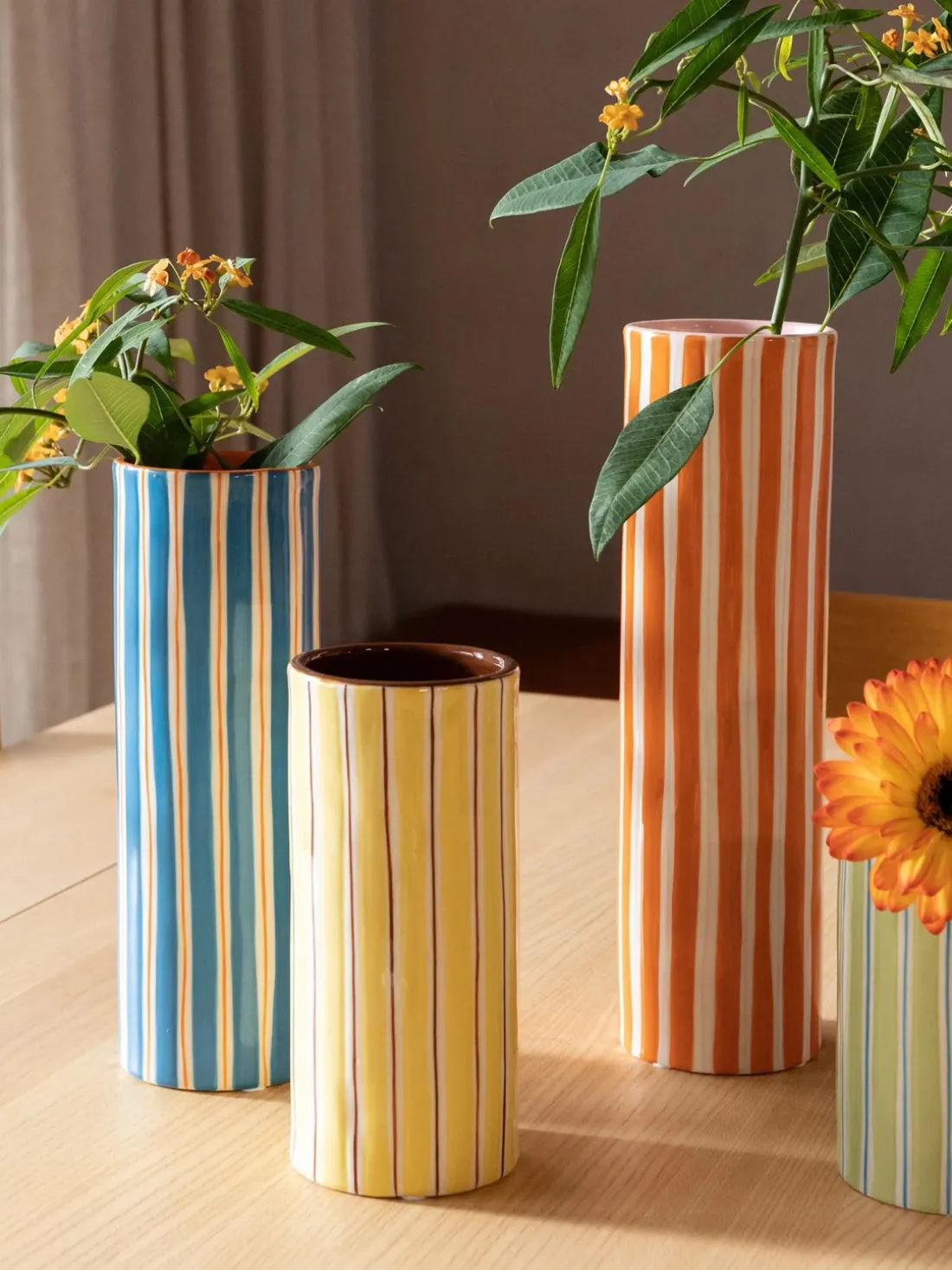 Este jarrón Ray forma parte de la conocida serie de jarrones Ray. Tiene un diseño a rayas pintado a mano y una forma irregular que le da un aspecto único. Combínalo con la maceta Ray para conseguir un elegante conjunto.