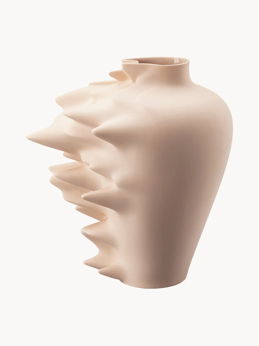 Esta extraordinaria colección de Rosenthal refleja los arquetípicos jarrones de la DINASTÍA MING, congelados en un estado de lapso de tiempo digital. Una mezcla de memoria colectiva y abstracción futurista simboliza el cambio cultural provocado por la tecnología digital: la velocidad de procesamiento de la información, su obsolescencia y su desapego. Esto se expresa a través de las decoraciones metafóricas del jarrón, mientras que, esculpido con herramientas de alta tecnología, encapsula 500 años de artesanía humana. Una interpretación fascinante de los cambios sociales de nuestro tiempo y otra pieza de diseño excepcional de Rosenthal.