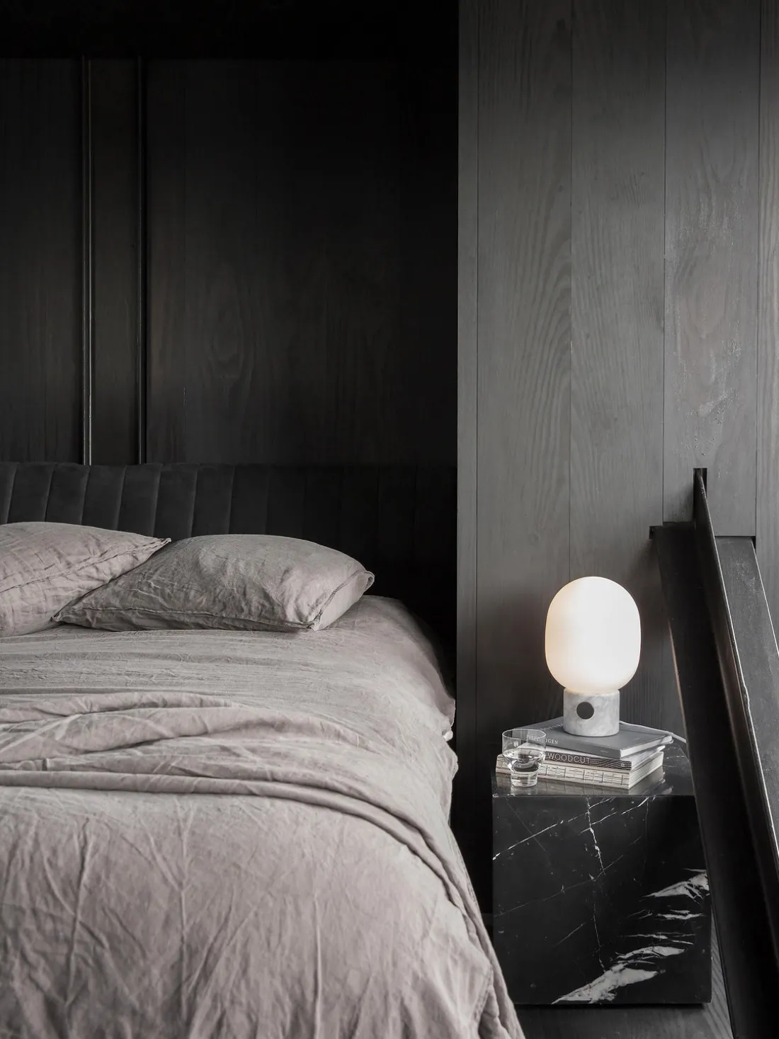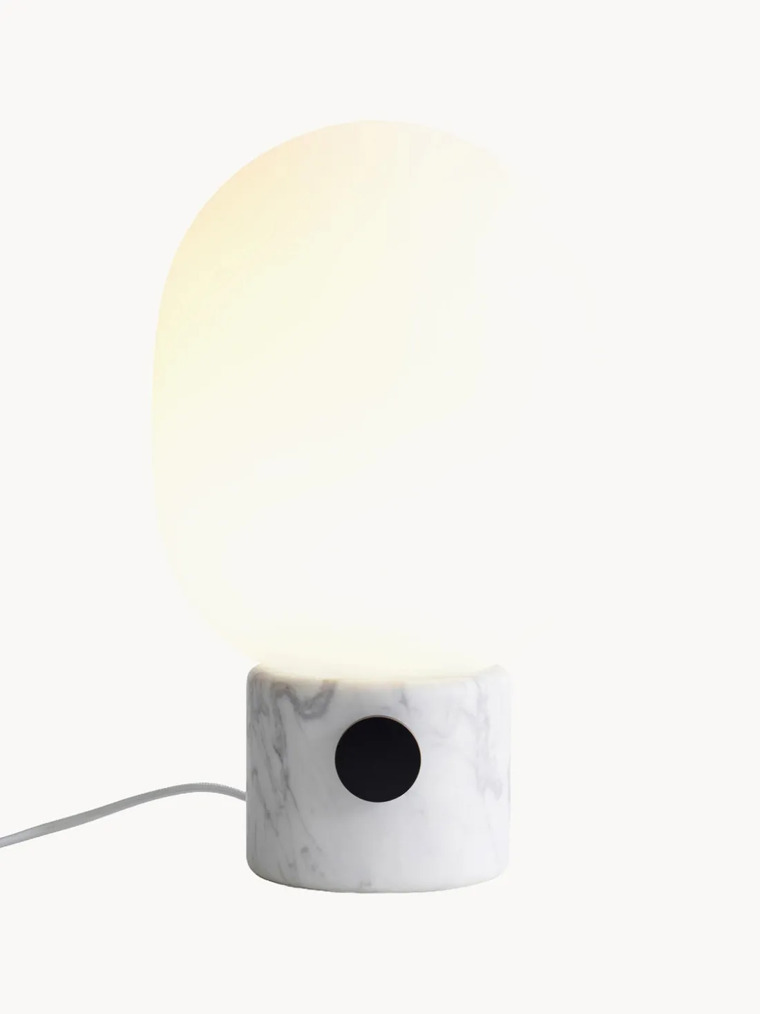 La lámpara JWDA es un clásico instantáneo. Es una pieza escultórica que llama la atención y da nueva vida a tu espacio. El contraste entre el delicado cristal redondeado y la robusta base de metal crea una silueta equilibrada y fascinante.