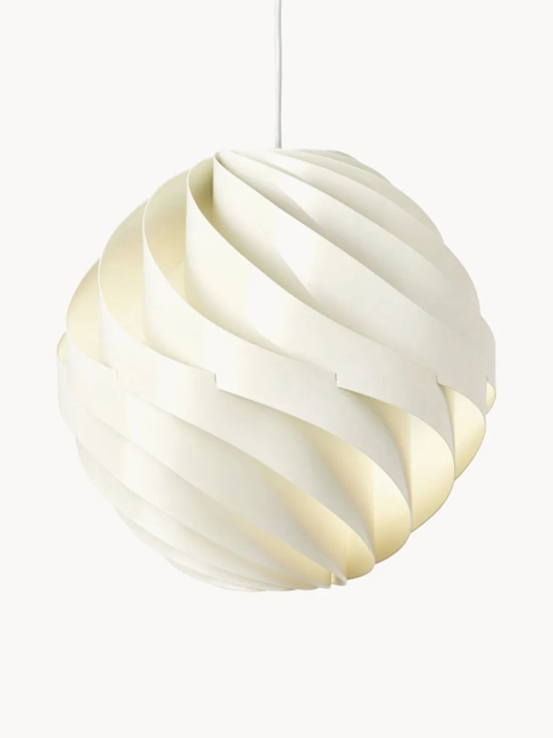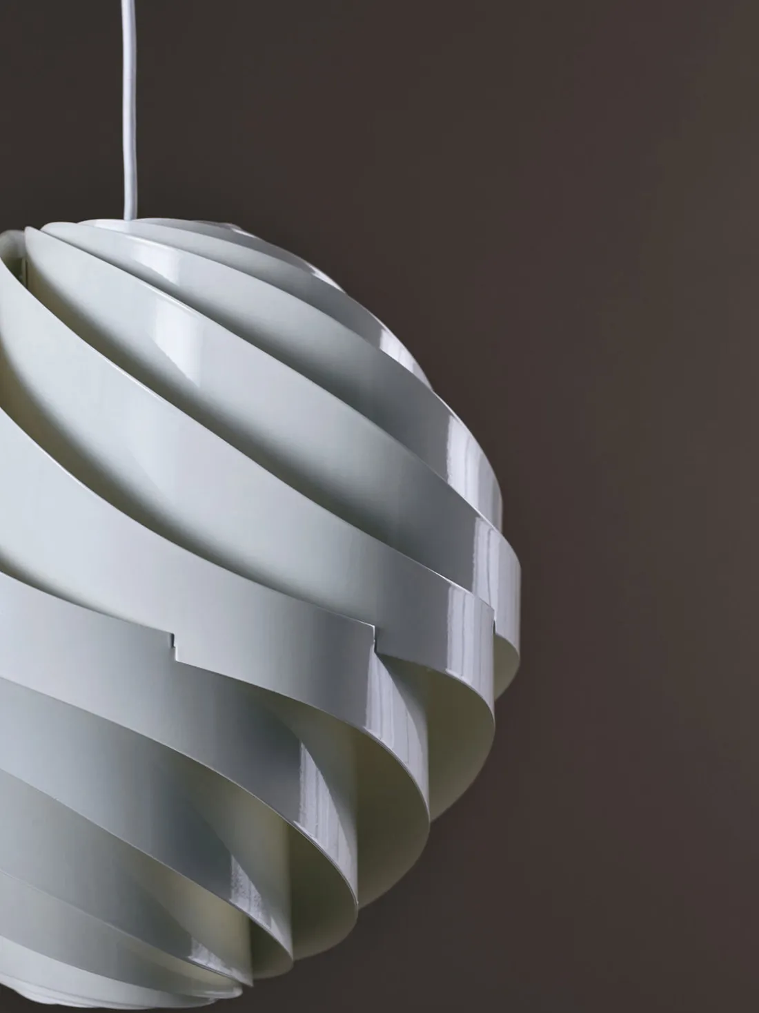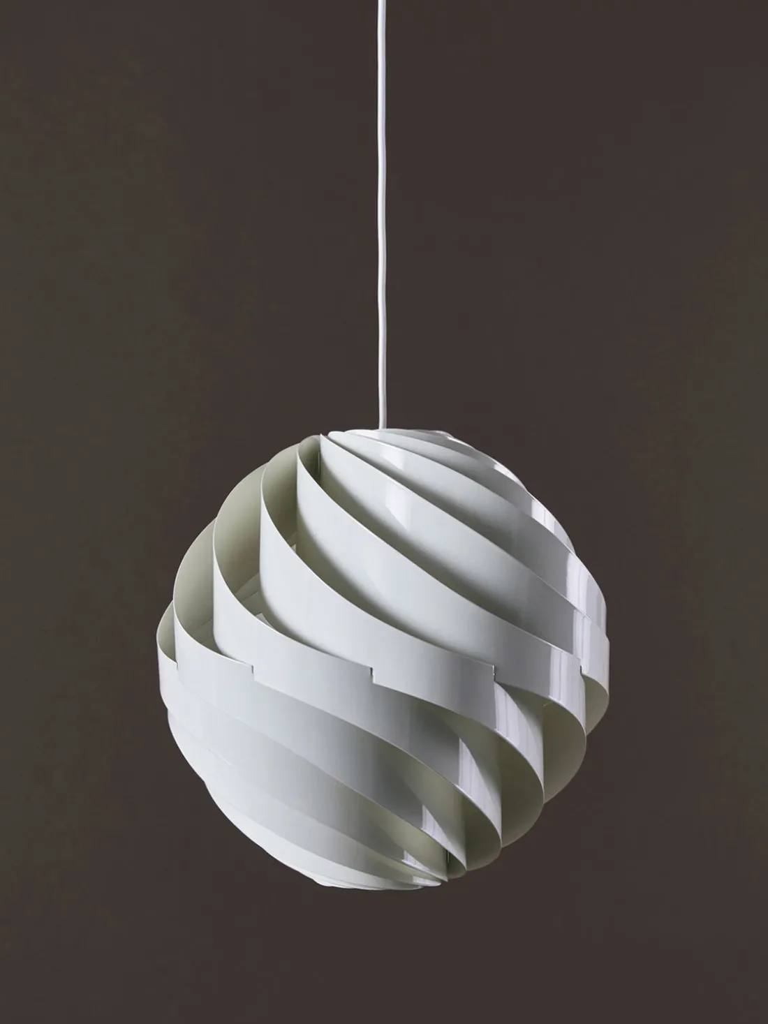 Inspirado en la delicada calidad del papel de arroz japonés, Weisdorf lo reinventó en una forma más duradera y robusta. La carcasa exterior de la lámpara consta de doce lamas idénticas en espiral que se unen para formar un globo con forma de flor, difuminando suavemente la luz. La lámpara TURBO ejemplifica la pasión de Weisdorf por los elementos modulares repetidos, un enfoque característico que se encuentra en toda su obra.