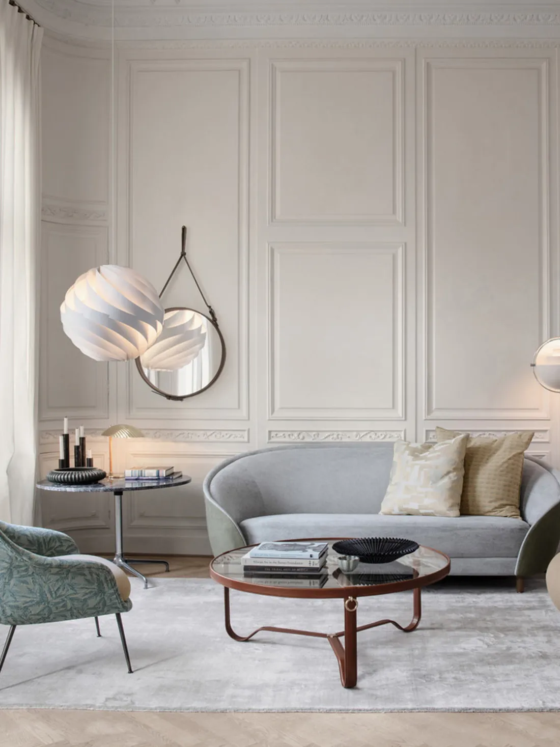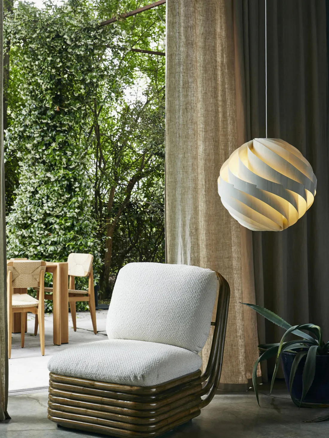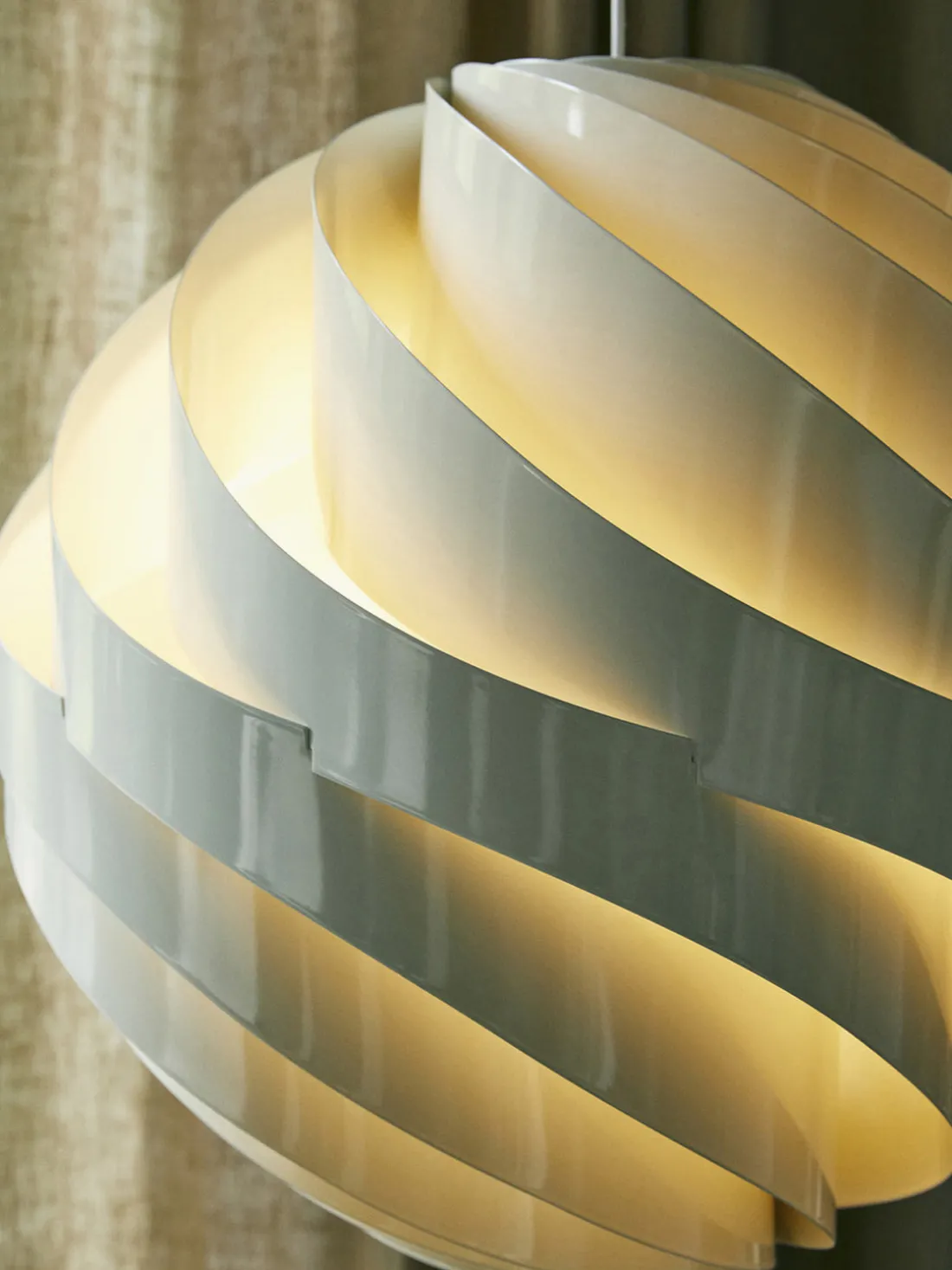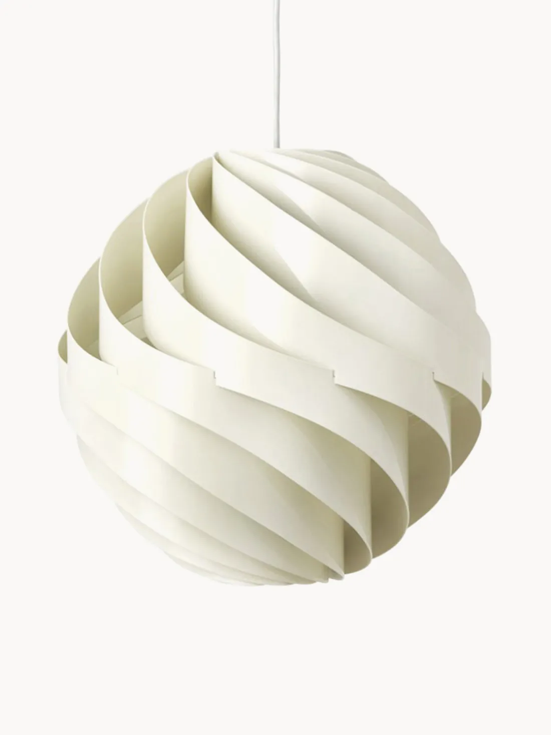 Inspirado en la delicada calidad del papel de arroz japonés, Weisdorf lo reinventó en una forma más duradera y robusta. La carcasa exterior de la lámpara consta de doce lamas idénticas en espiral que se unen para formar un globo con forma de flor, difuminando suavemente la luz. La lámpara TURBO ejemplifica la pasión de Weisdorf por los elementos modulares repetidos, un enfoque característico que se encuentra en toda su obra.