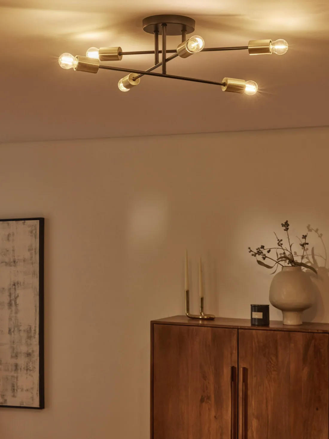 Esta lámpara de techo destaca por su diseño minimalista y líneas claras que se integran perfectamente en cualquier decoración. Disponible en tres acabados, la lámpara añade un look fresco y contemporáneo a tu hogar, adaptándose tanto a interiores modernos como clásicos. Además de negro y blanco, puedes optar por un modelo con detalles en oro, que añade un toque discreto de glamour y sofisticación.