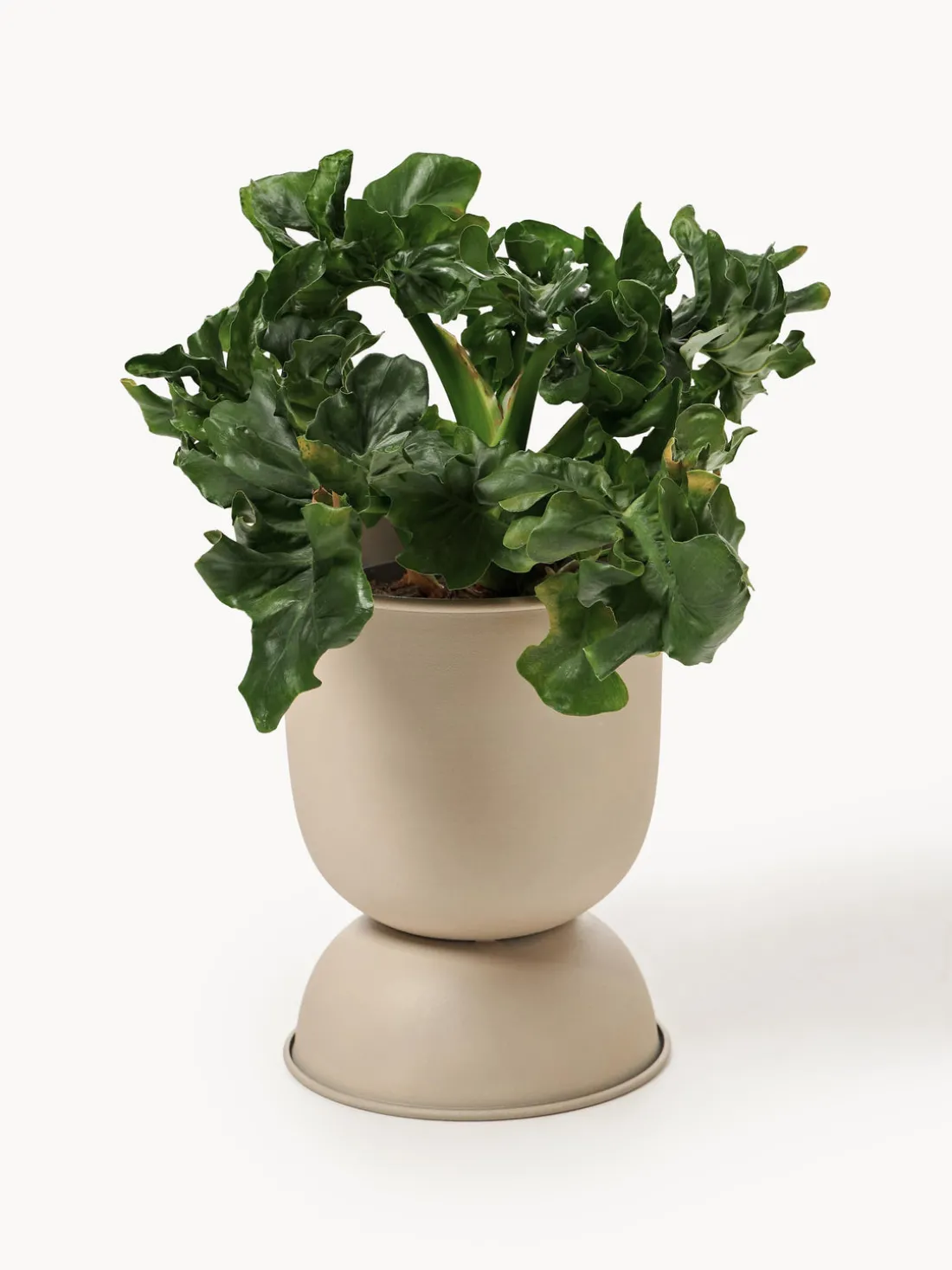 El macetero Hourglass con superficie mate no sólo eleva tus plantas, sino que también es un expresivo complemento para cualquier habitación. Su pequeña forma de reloj de arena es ideal para habitaciones con poco espacio. Gracias a su resistencia a la intemperie, el macetero también es adecuado para terrazas o balcones.