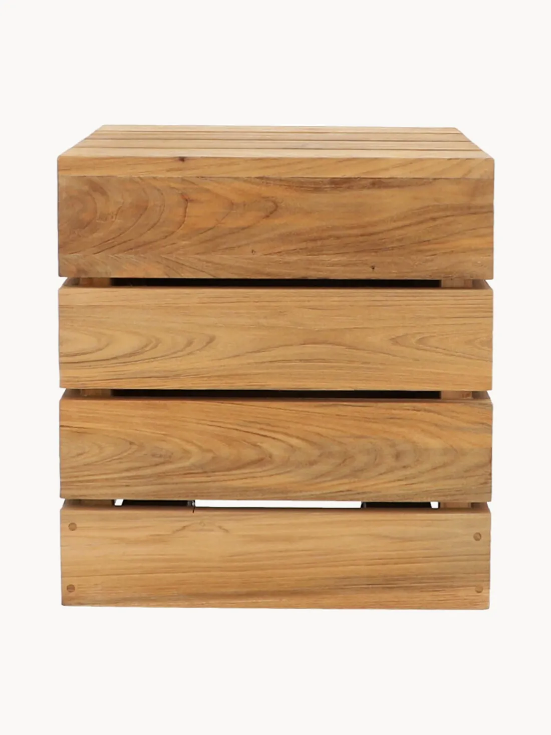 La robusta y duradera mesa auxiliar de jardín está fabricada en teca y convence por su resistencia a la intemperie.