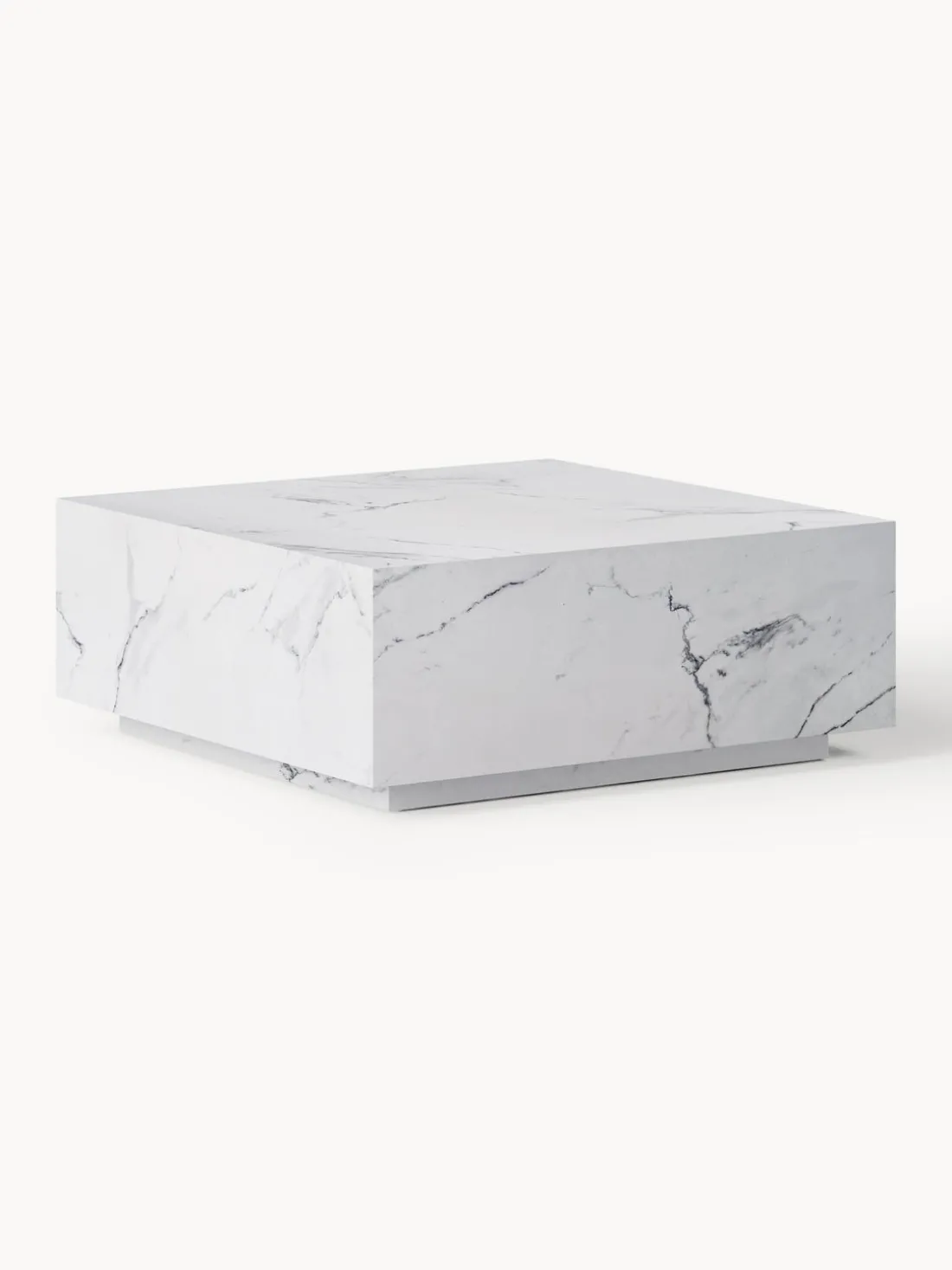 Tiene base de madera recubierta con lámina en aspecto mármol. La base crea un efecto flotante a la mesa.