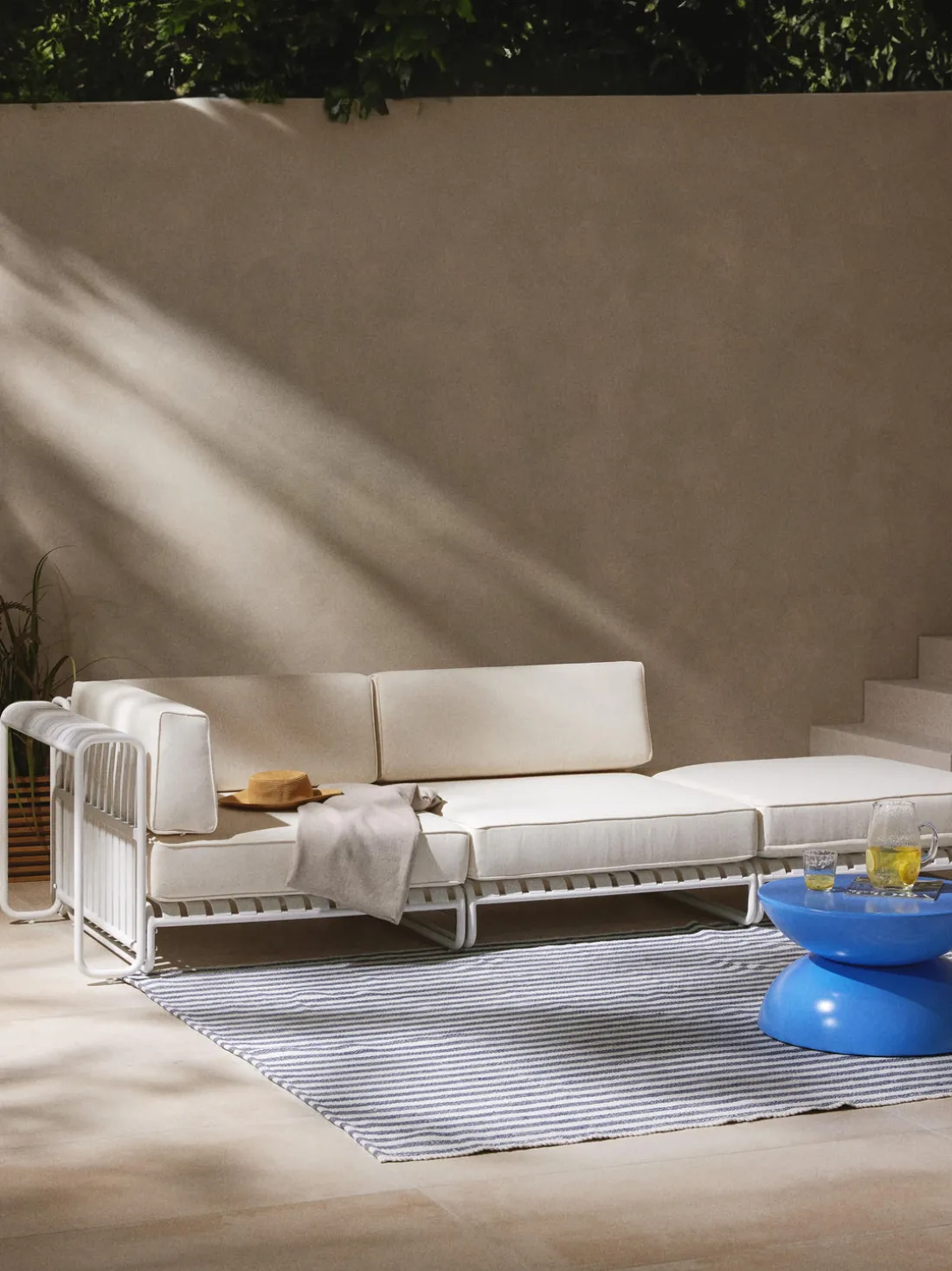 Para disfrutar del producto el mayor tiempo posible, debes protegerlo de la intemperie y asegurarte de que no esté expuesto a la lluvia directa. Para proteger el tapizado de la mejor manera posible, recomendamos colocar el producto bajo techo o cubrirlo cuando no está en uso.