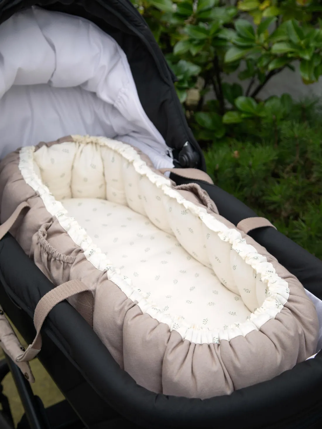 Con el nido para bebé 3 en 1, obtendrás un maravilloso nido para bebé, un capazo y una alfombra de juegos en un solo producto seguro y funcional. El nido para bebé está fabricado con materiales cuidadosamente seleccionados y probado según las normas europeas de seguridad para capazos y colchonetas de juego. Tiene asas que se bloquean entre sí para que no corras el riesgo de que se te caiga un asa cuando utilices el nido de bebé como capazo, así como dos prácticos bolsillos en los laterales para chupetes y otros objetos esenciales. El nido de bebé cabe en cochecitos y sillas de paseo, por lo que puede sustituir al capazo tradicional. Cuando los laterales están plegados, sirve como una amplia y mullida alfombra de juegos en la que también se puede cambiar al bebé si es necesario.