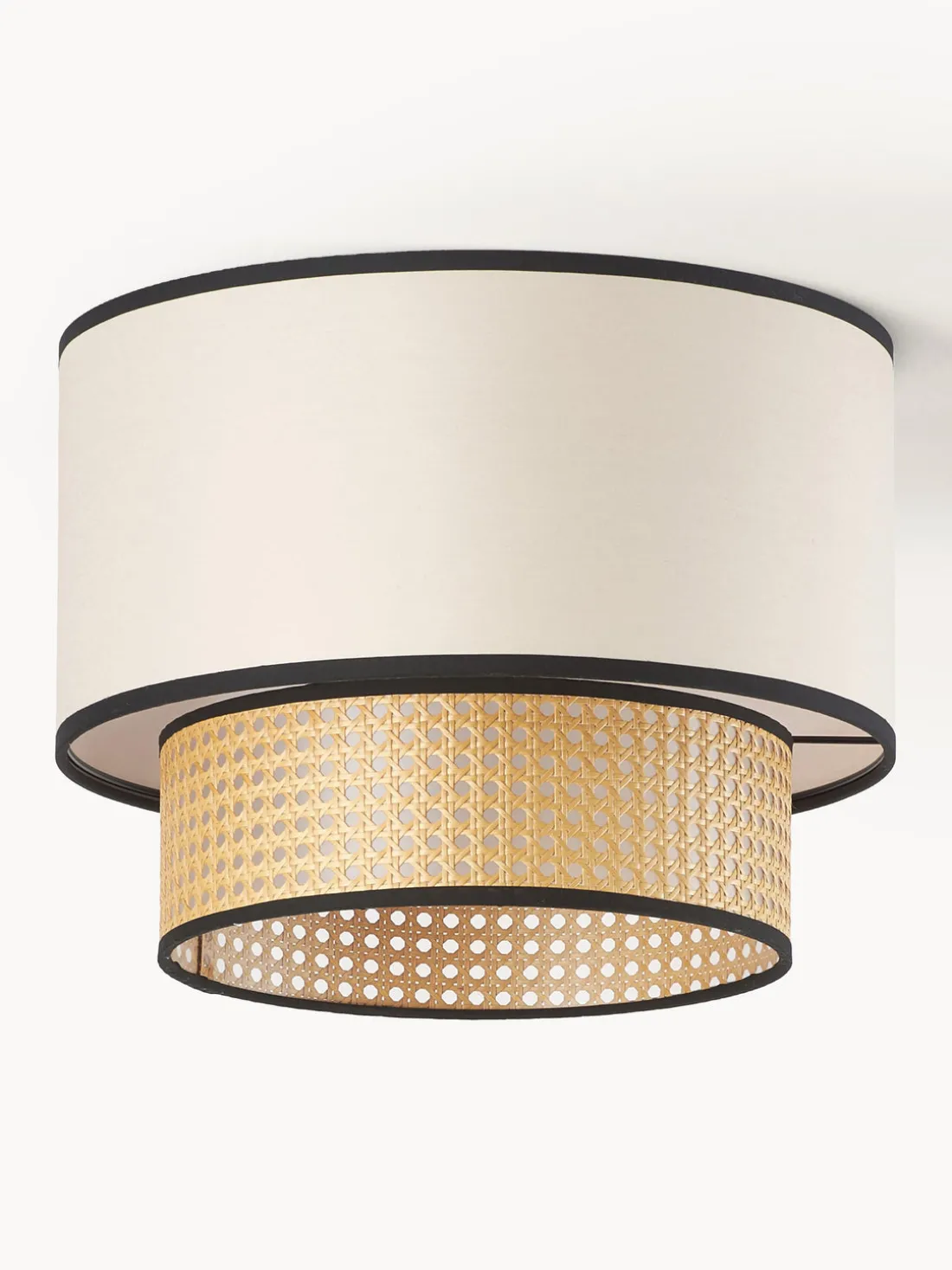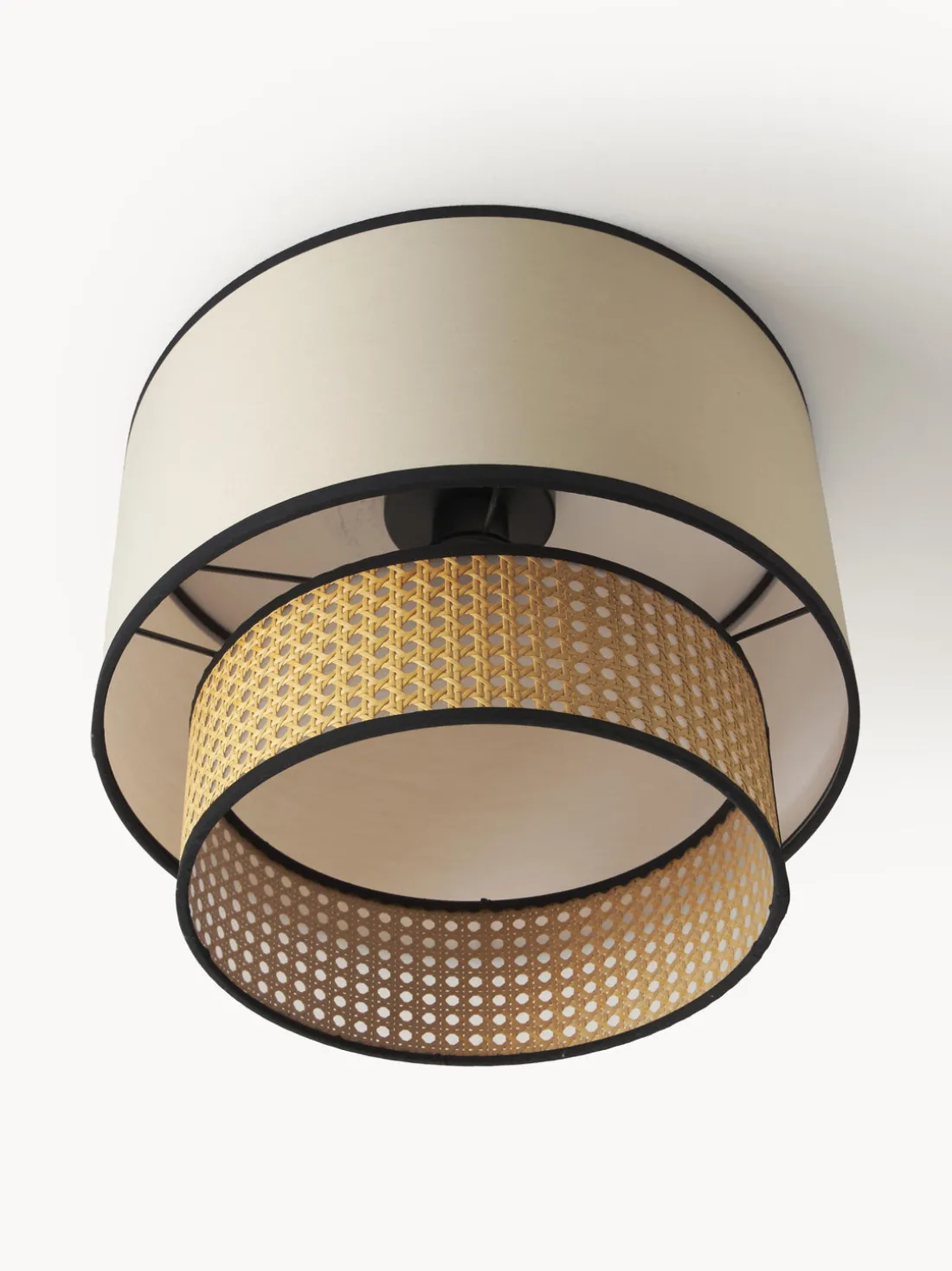 El diseño de la lámpara de techo Vienna se complementa con un esquema de colores distintivo. El dosel de la lámpara está acabado en negro mate, mientras que la pantalla está disponible en una elegante selección de tonos claros como marrón claro, negro y beige. Estas combinaciones de colores aportan una atmósfera cálida y acogedora a la habitación.