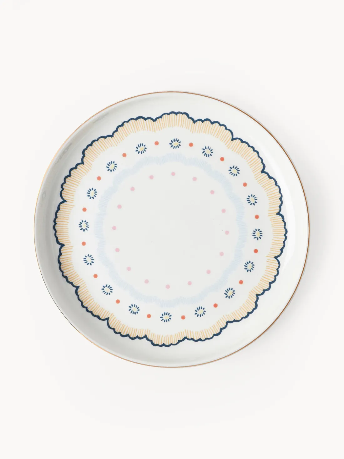 Los cuatro platos postre de porcelana de alta calidad con un elegante borde dorado son perfectos para mezclar y combinar.