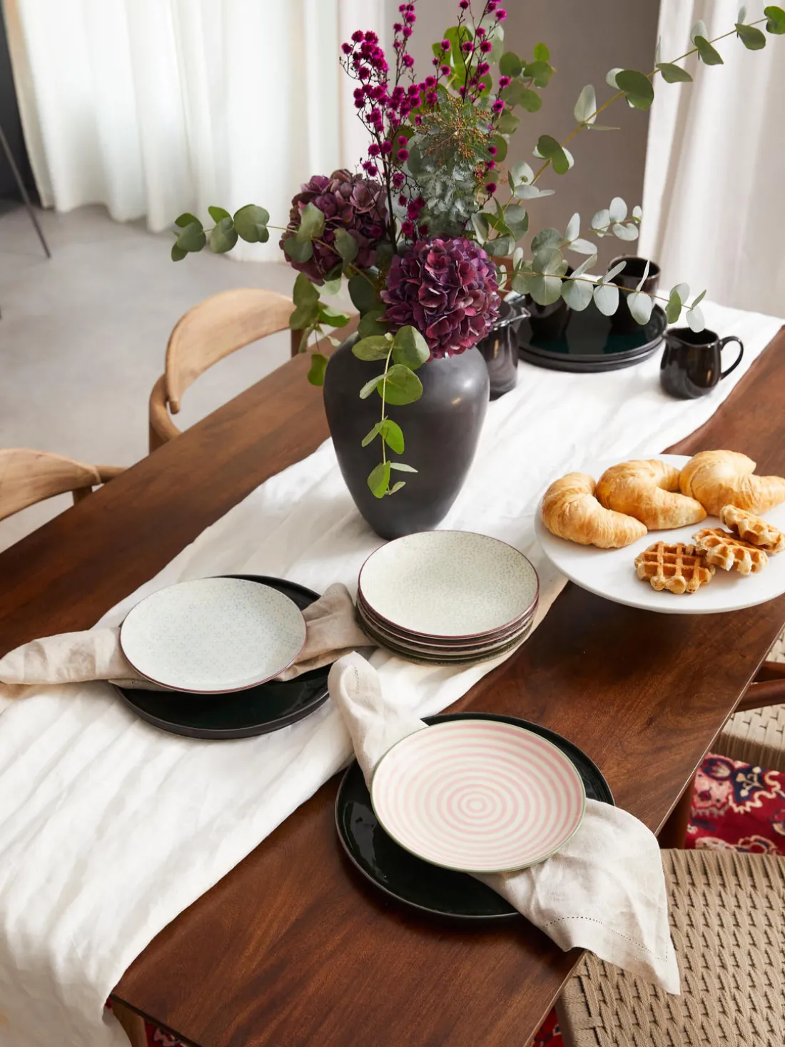 ¡Los coloridos platos de porcelana con diseño gráfico le darán vida a tu mesa!