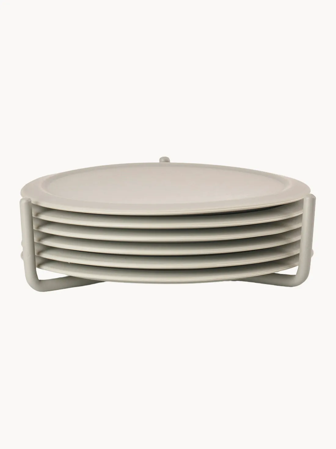 Posavasos de silicona de colores. Una colocación suave y silenciosa es la mejor manera de describir cuando pones tu vaso sobre un posavasos de silicona. Se entrega como un set de seis posavasos en un práctico soporte de metal.