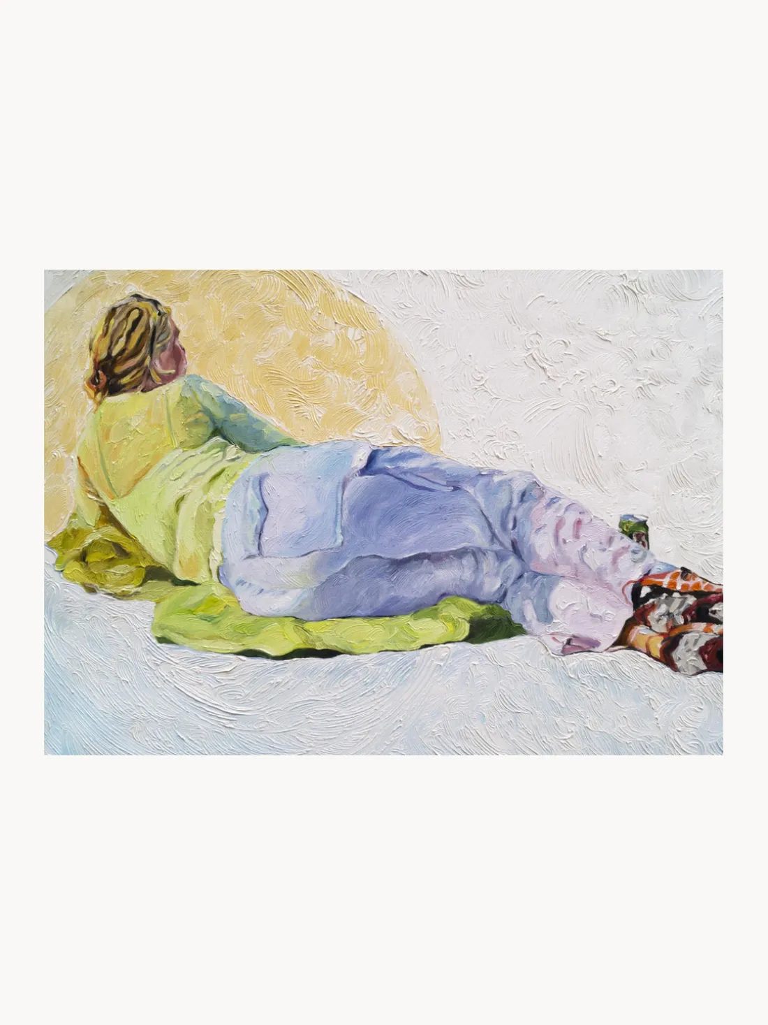 OLIMPIA es una composición artística de una pintora residente en Copenhague, Lolita Pelegrim. Inspirándose en la obra Olympia de Édouarda Manet, Pelegrim presenta una interpretación moderna del clásico: una figura tumbada en suaves tonos de verde claro, blanco y delicado violeta. La sutil representación se ve aún más acentuada por la relajante paleta de colores de la obra de arte.