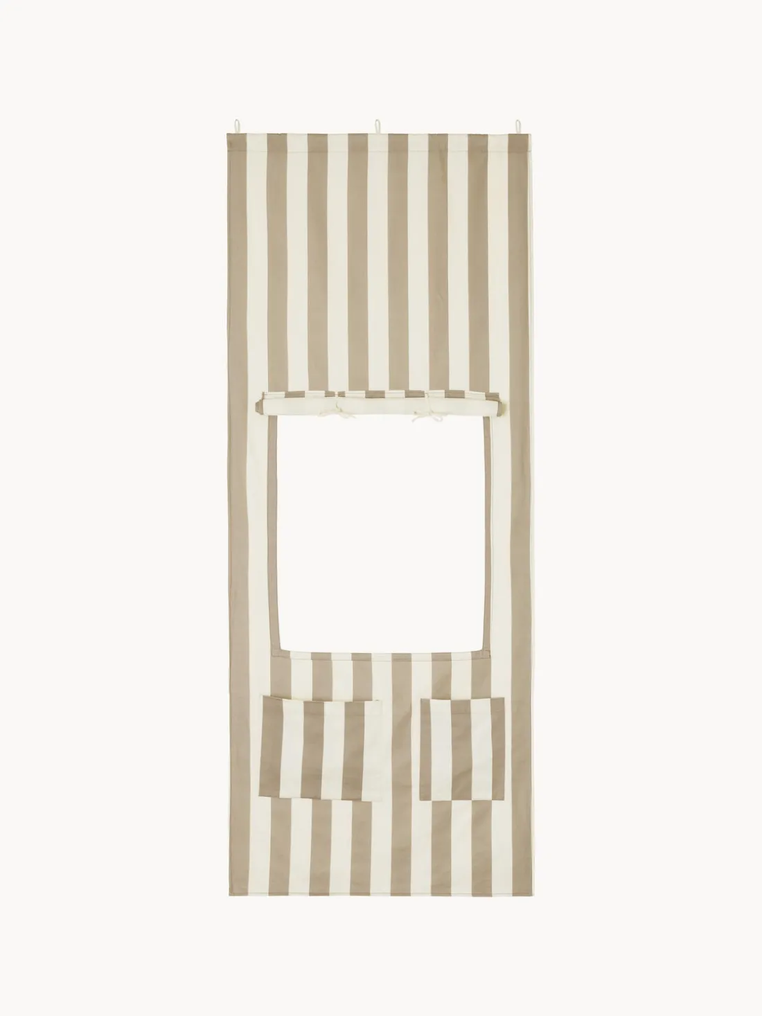 El quiosco textil colgante DOORWAY es un complemento sencillo para tus hijos. Se fija sin esfuerzo a cualquier puerta y se transforma instantáneamente en una tienda o teatro para fomentar el juego imaginativo. Tus hijos podrán asumir el papel de comerciante, montar un espectáculo de marionetas o inventar sus propias historias. Este quiosco es sinónimo de diversión, creatividad y aprendizaje a través del juego.